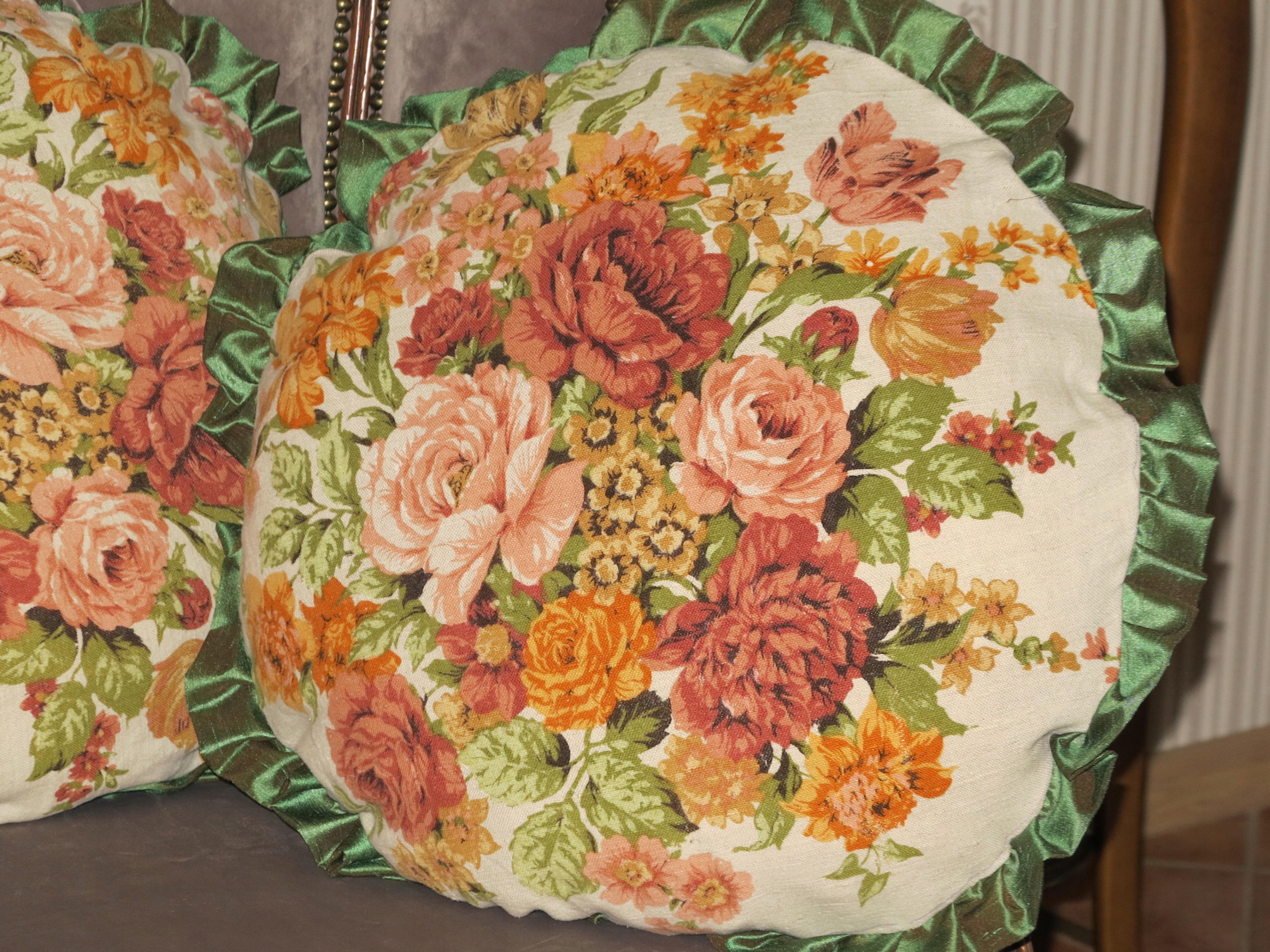 ВИключНО КРАСИ НАБІР ВЕЛИКИХ КРУГЛИХ ЛЛЯНИХ ПОДУШОК З ЧУДОВИМИ БУКЕТАМИ ТРОЯНД. ПОДУШКИ З НАПОВНЮВАЧОМ.