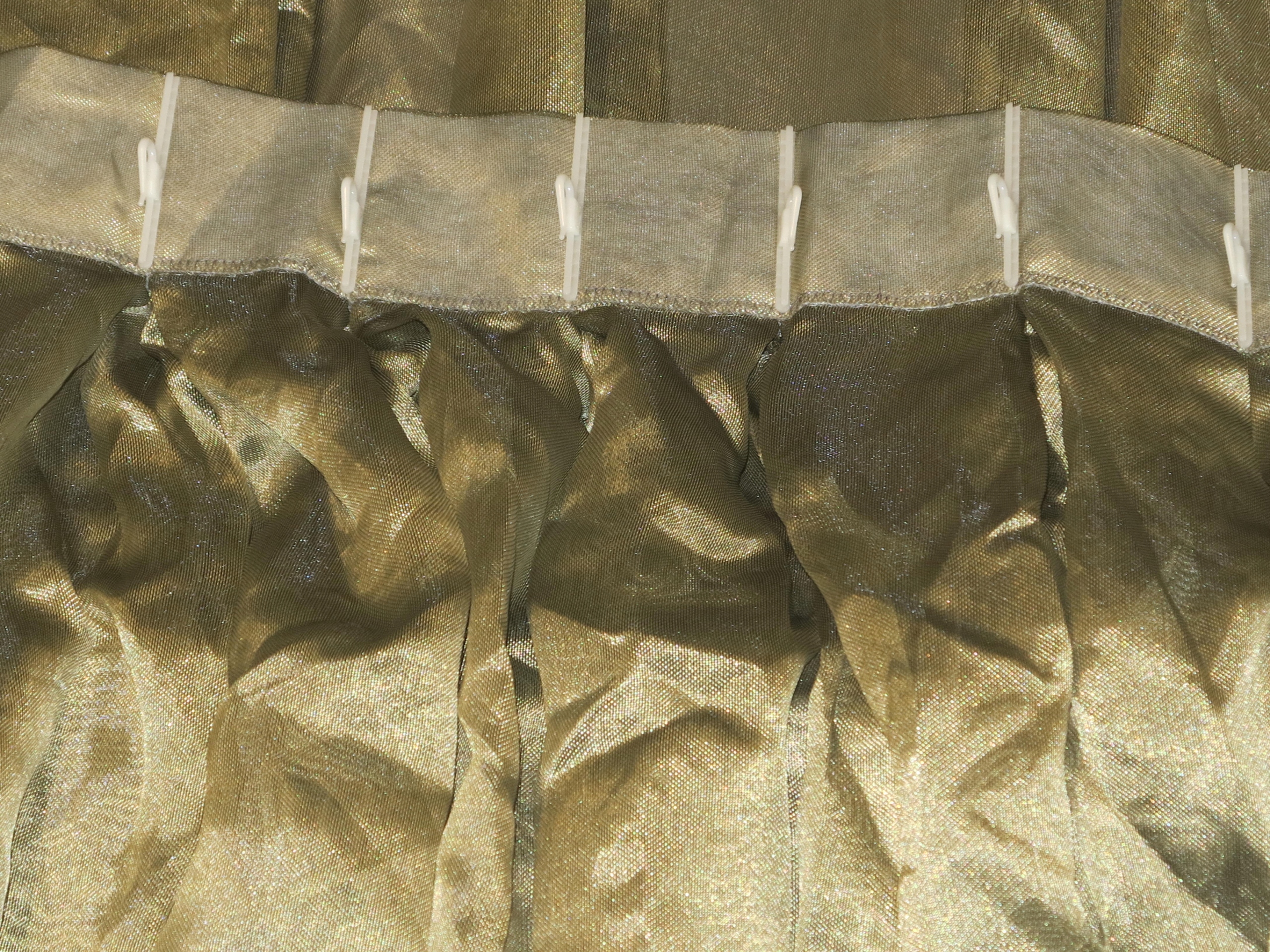 ШТОРИ ВЕРХУ ПОСТІЙНО РОЗТАШОВАНІ РІВНИМИ СКЛАДКАМИ, ЗЗАДУ ПРИКРІПЛЕНІ ПЛАСТИКОВІ ГАЧКИ