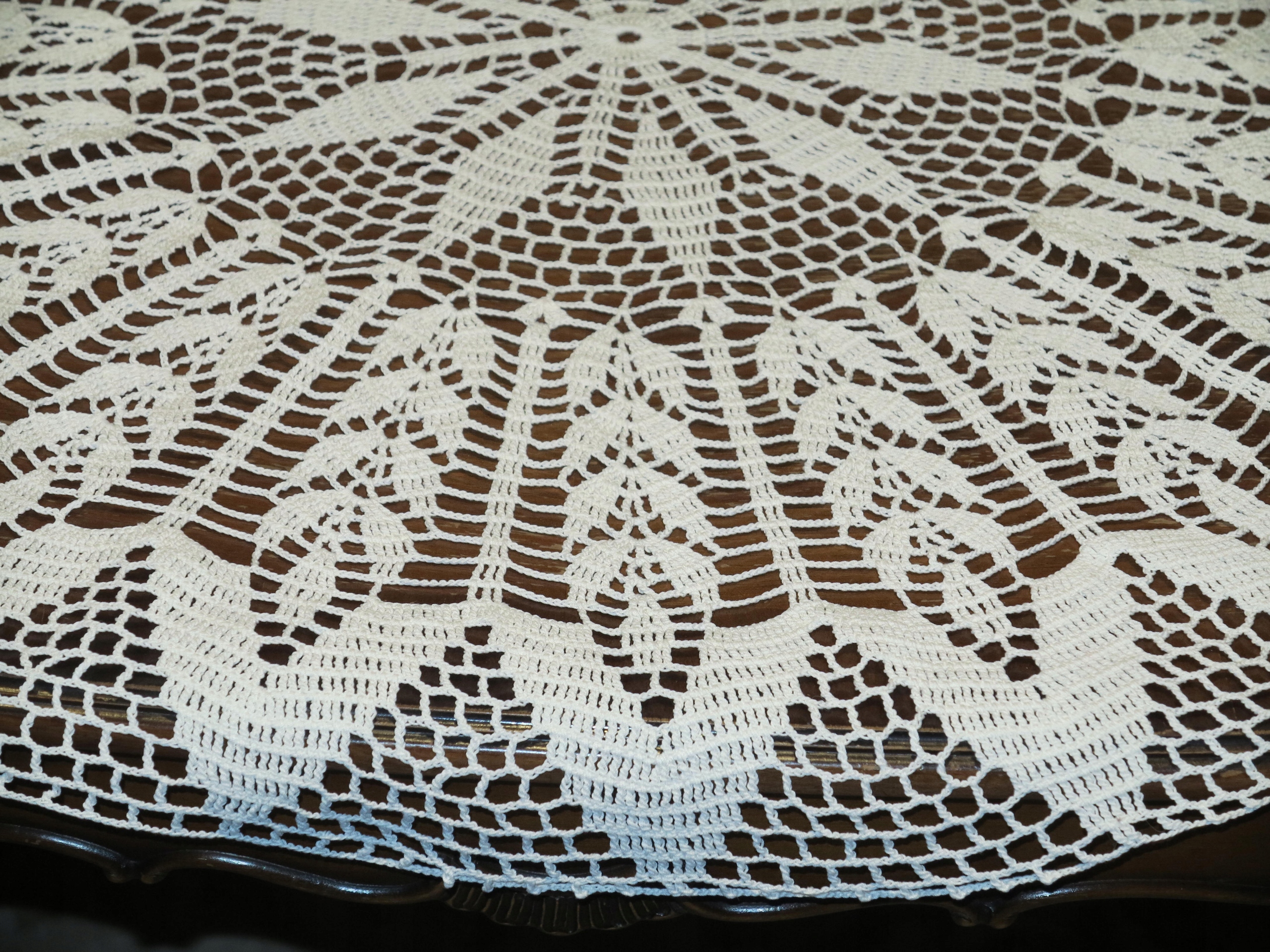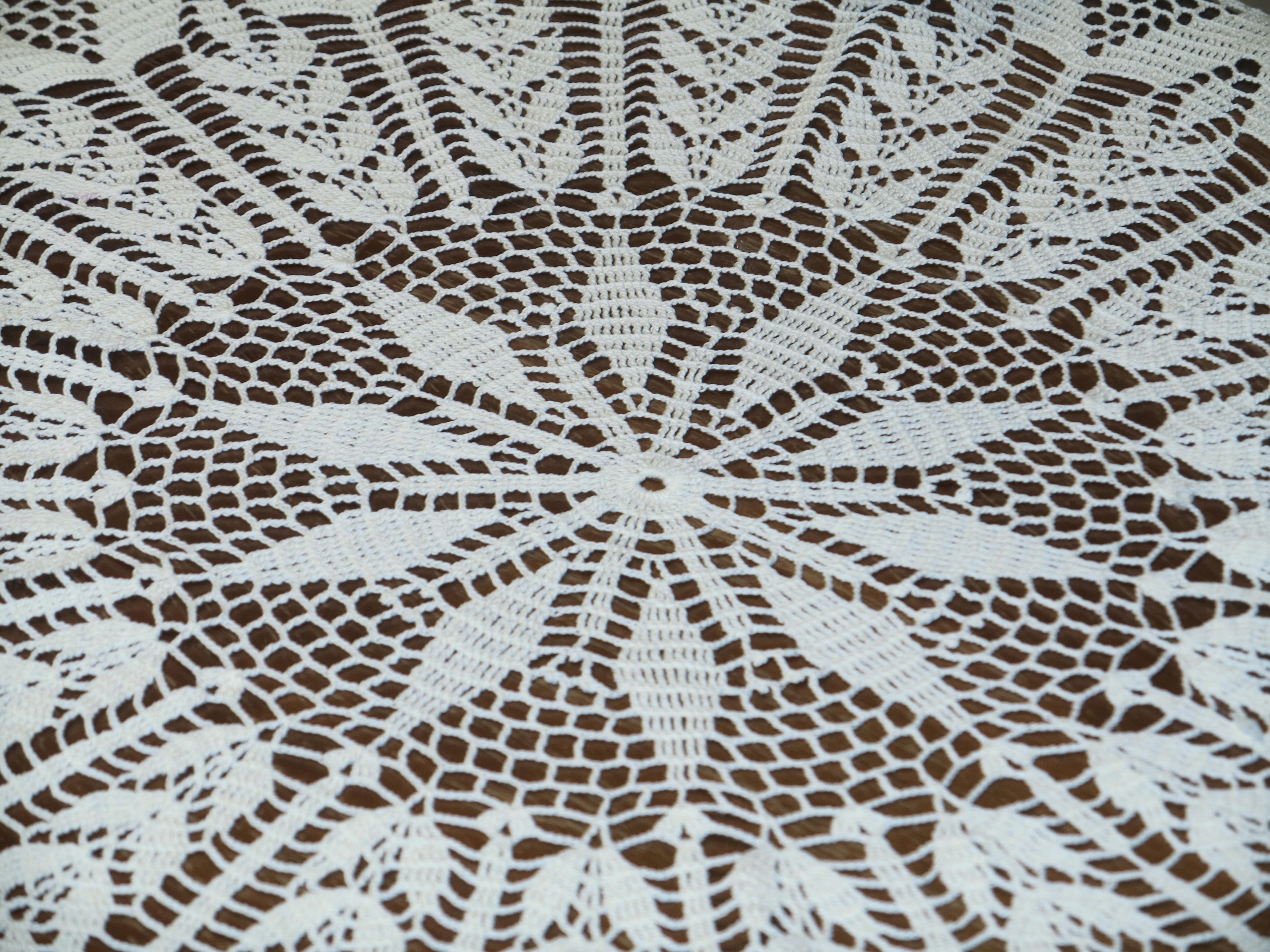ЧУДОВУ КРУГЛУ БІЛУ СКАТЕРТИНУ, В'ЯЗАНО РУЧНОЇ РОБИ З БАВОВНЯНИХ НИТОК.