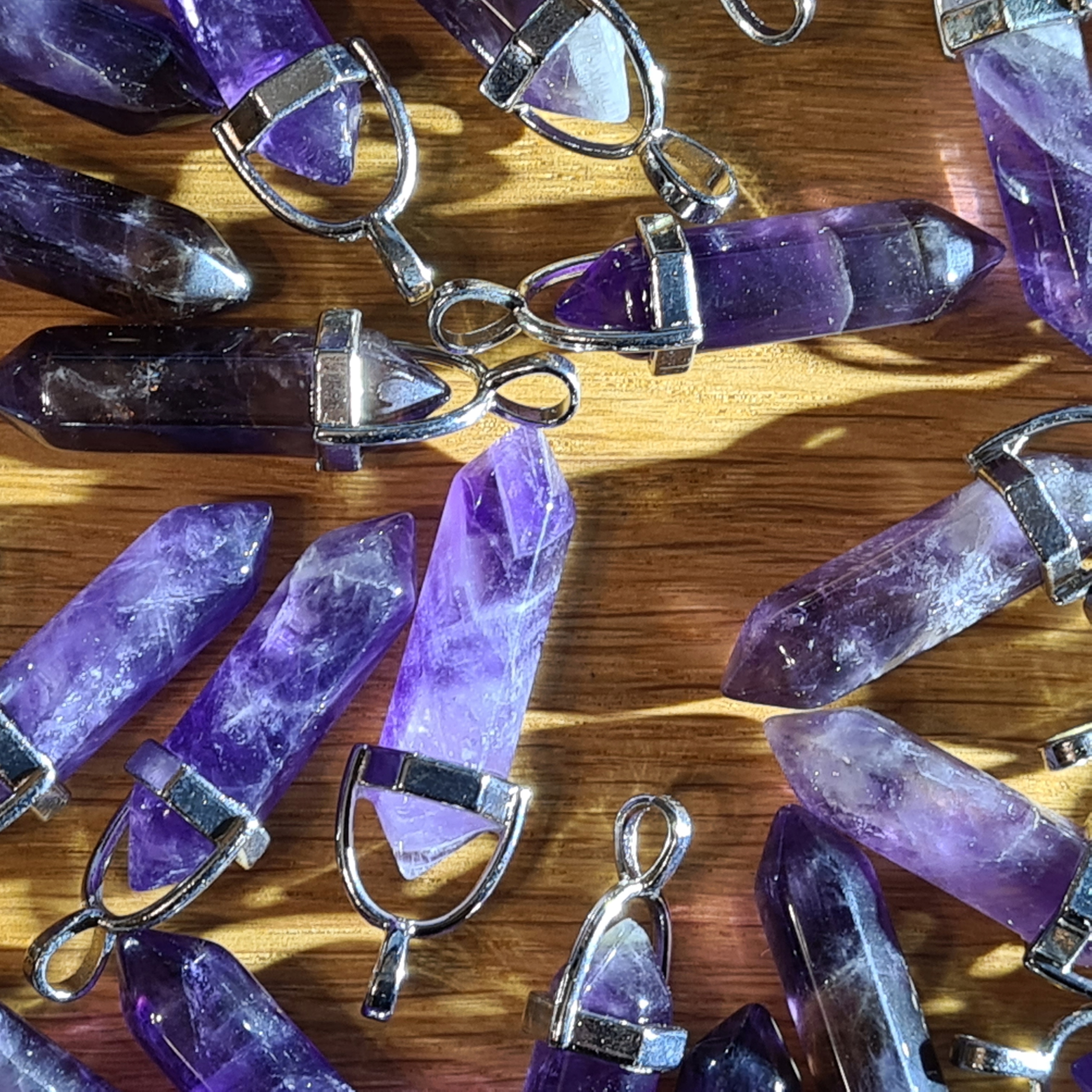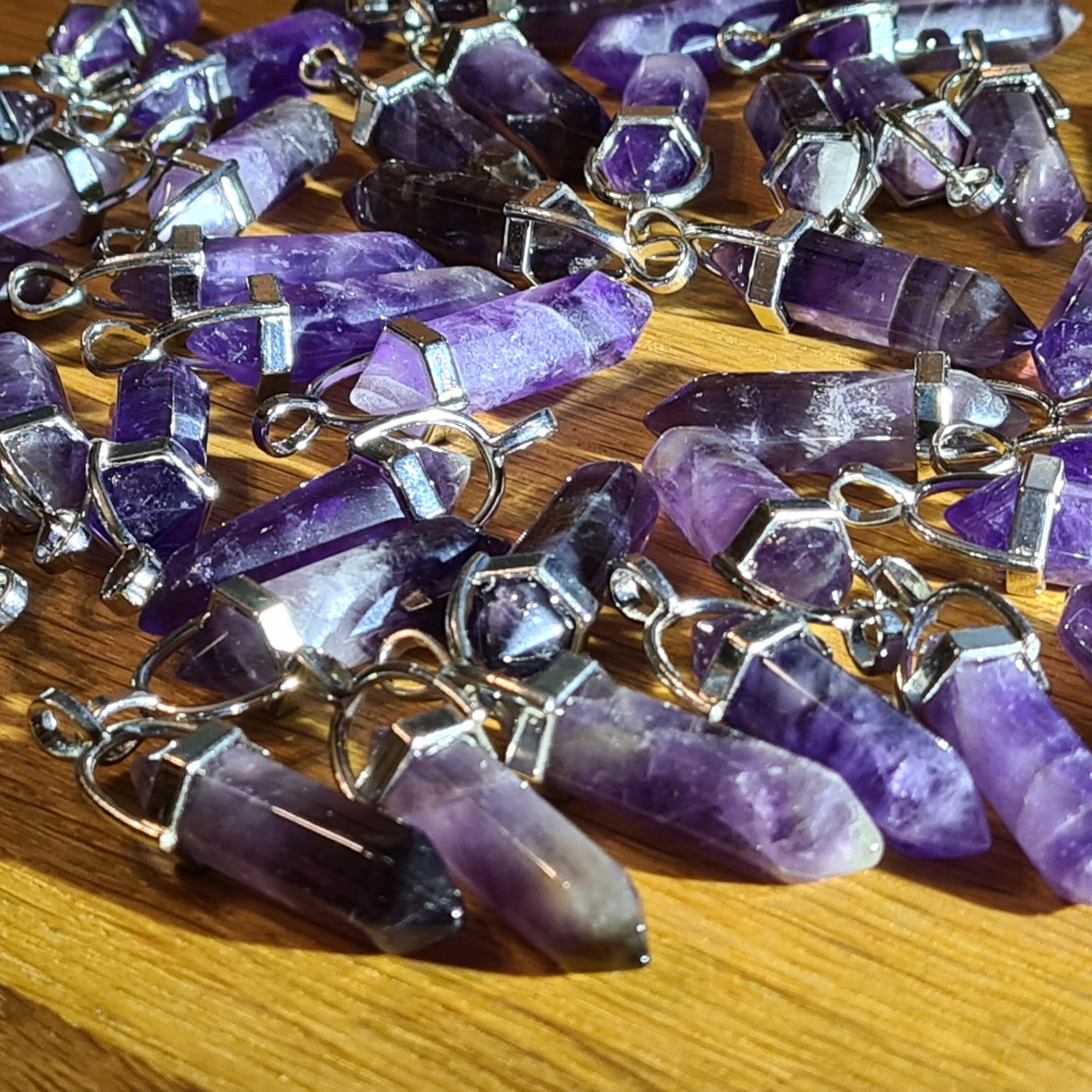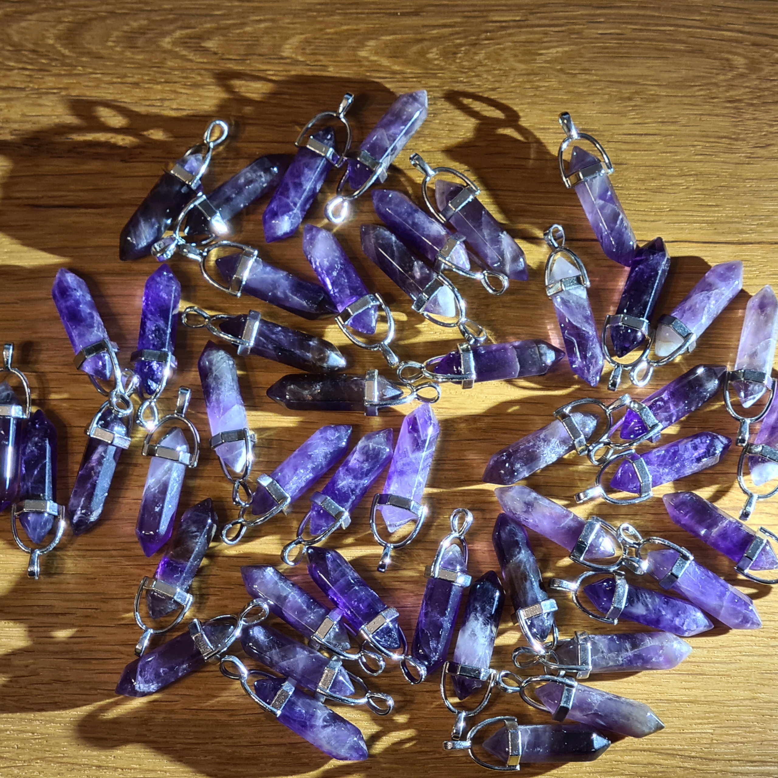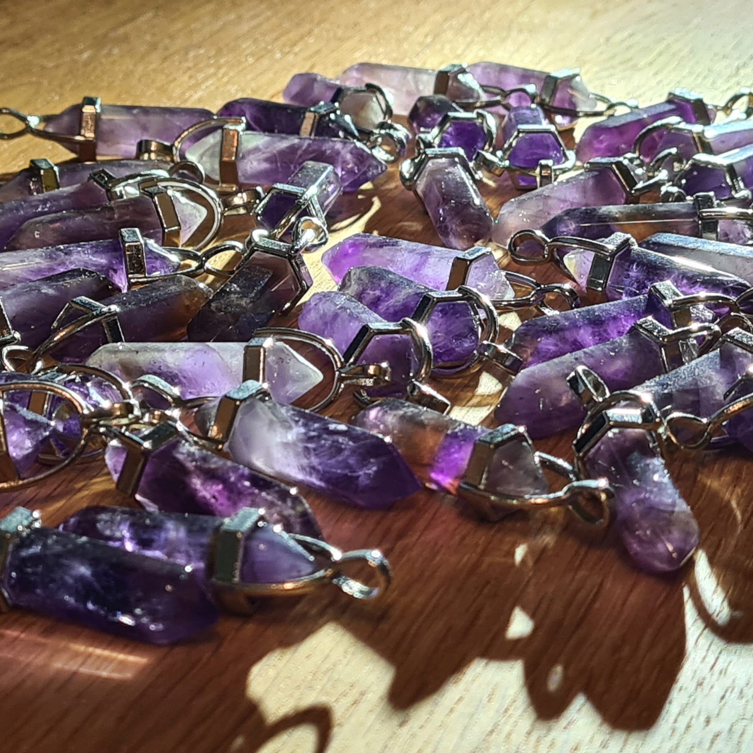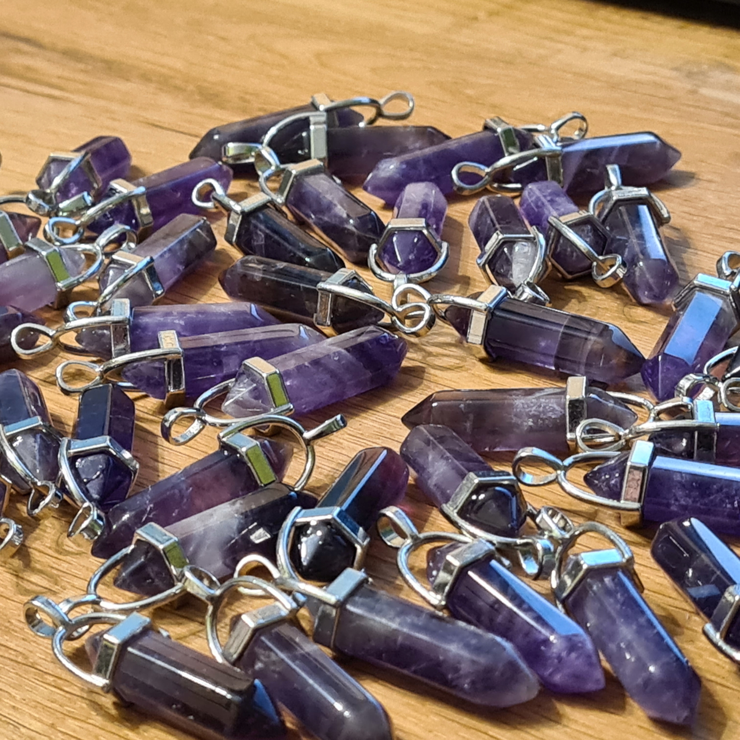 PIĘKNY BRELOK BRELOCZEK BRYLOK AMETYST KAMIEŃ NATURALNY KRYSZTAŁ ZAWIESZKA