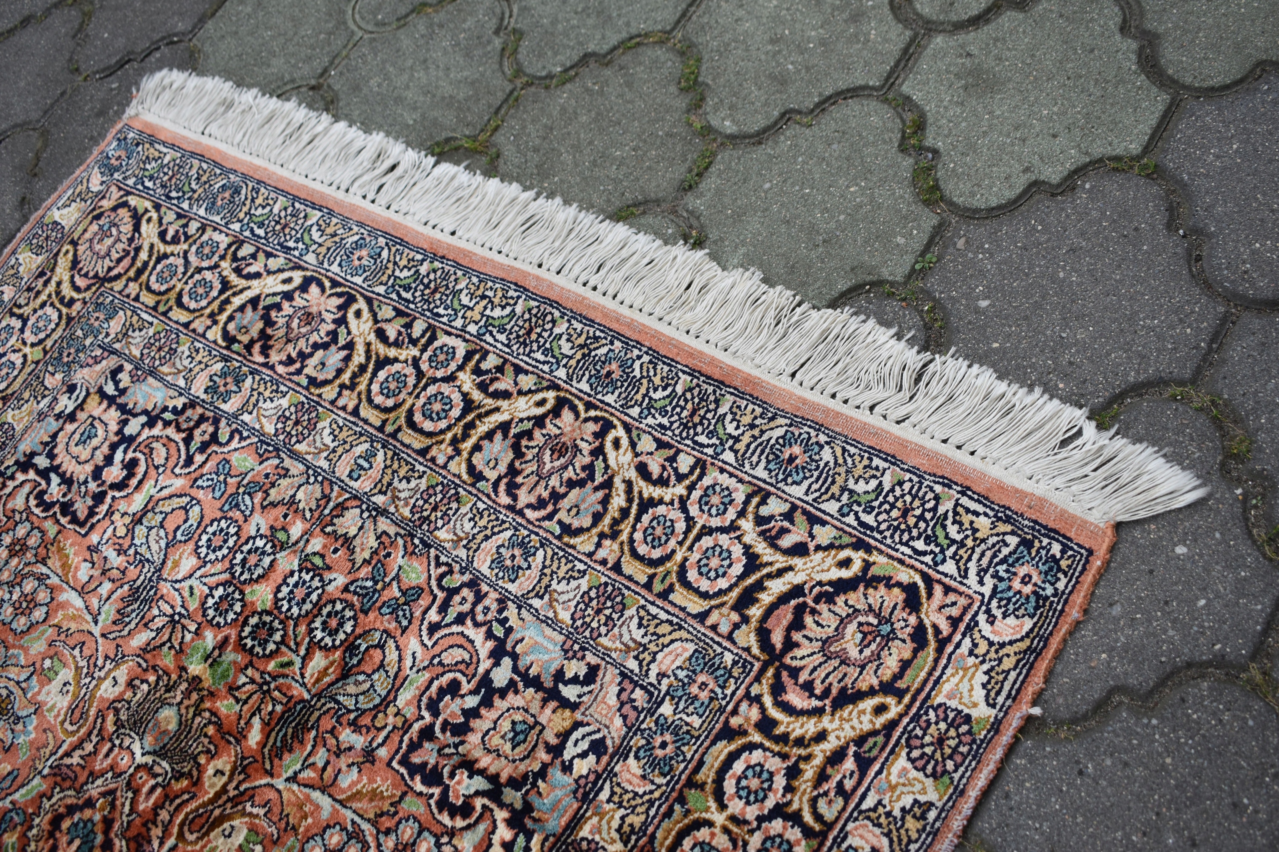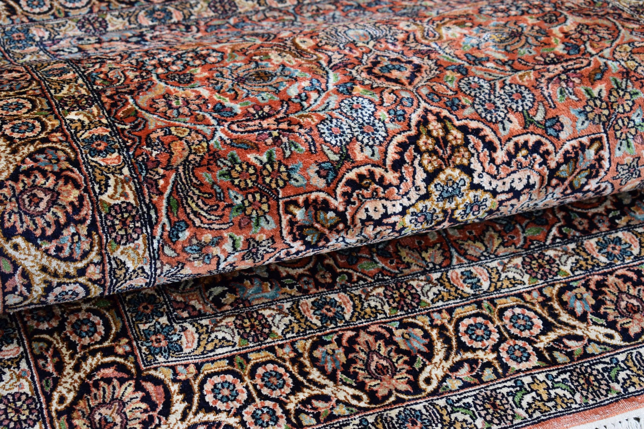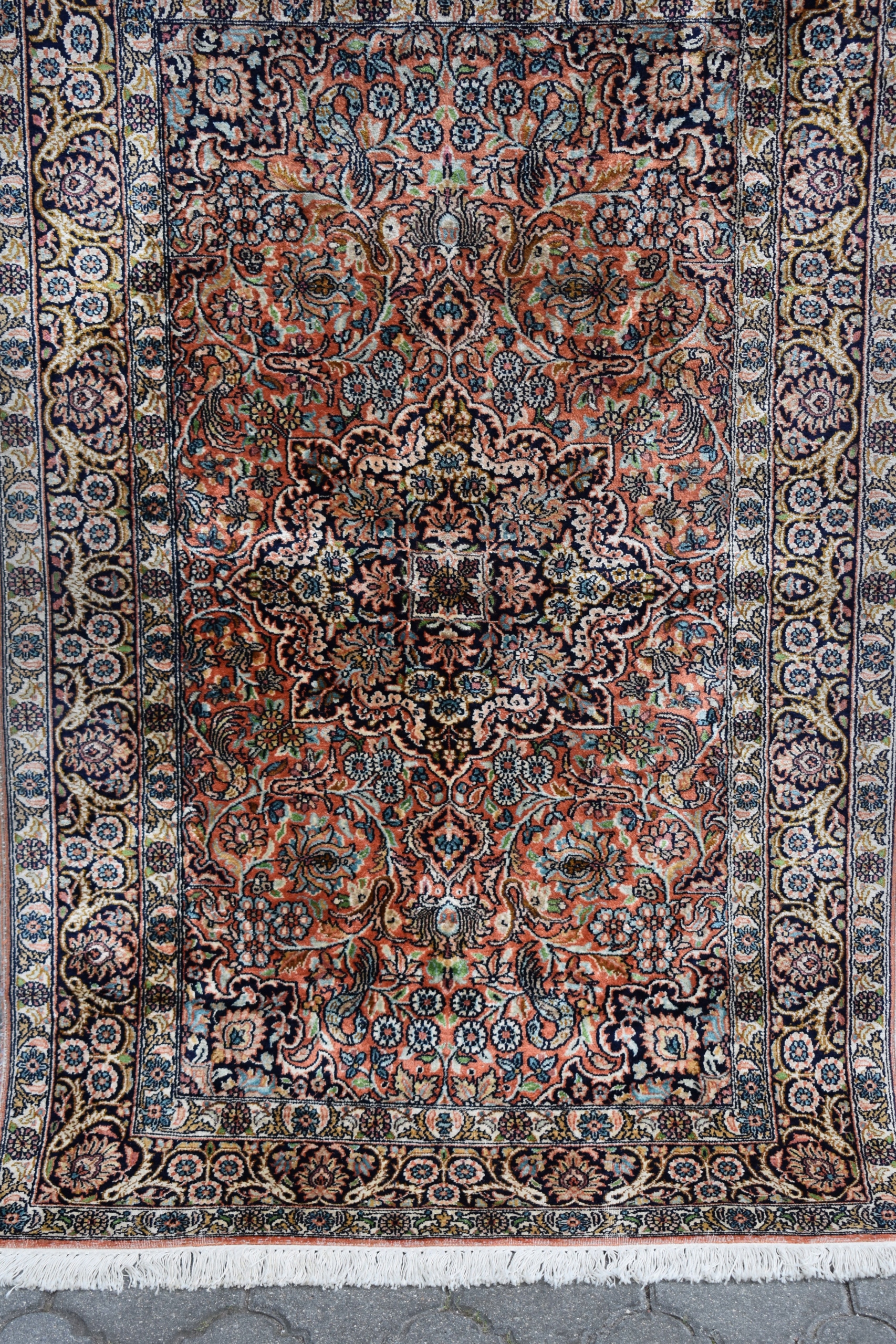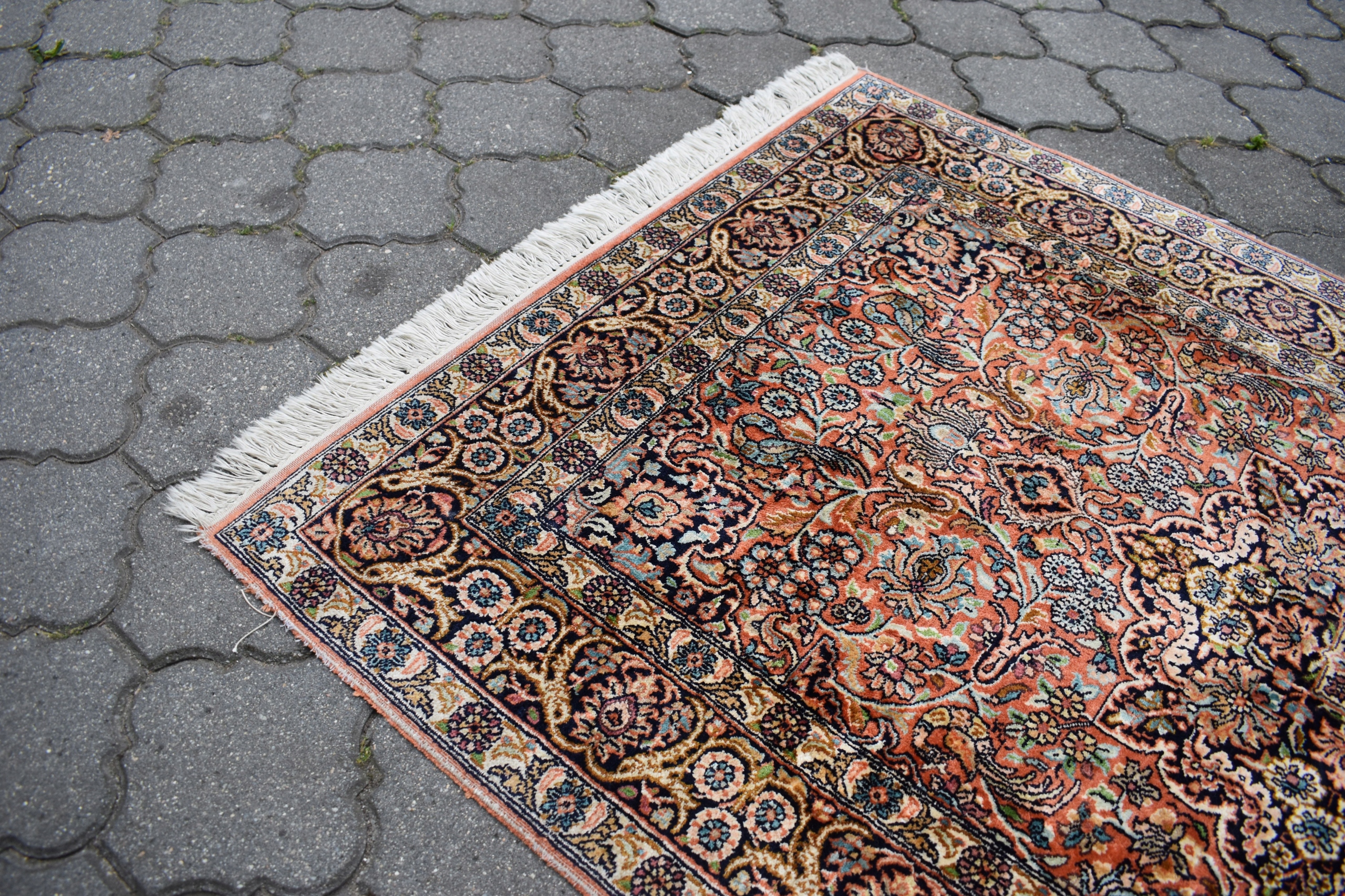 На наступному аукціоні я пропоную вам гарний, виготовлений зі 100% натурального шовку на бавовняній основі - складного, ручного ткання - блискучий килим - GHOM.