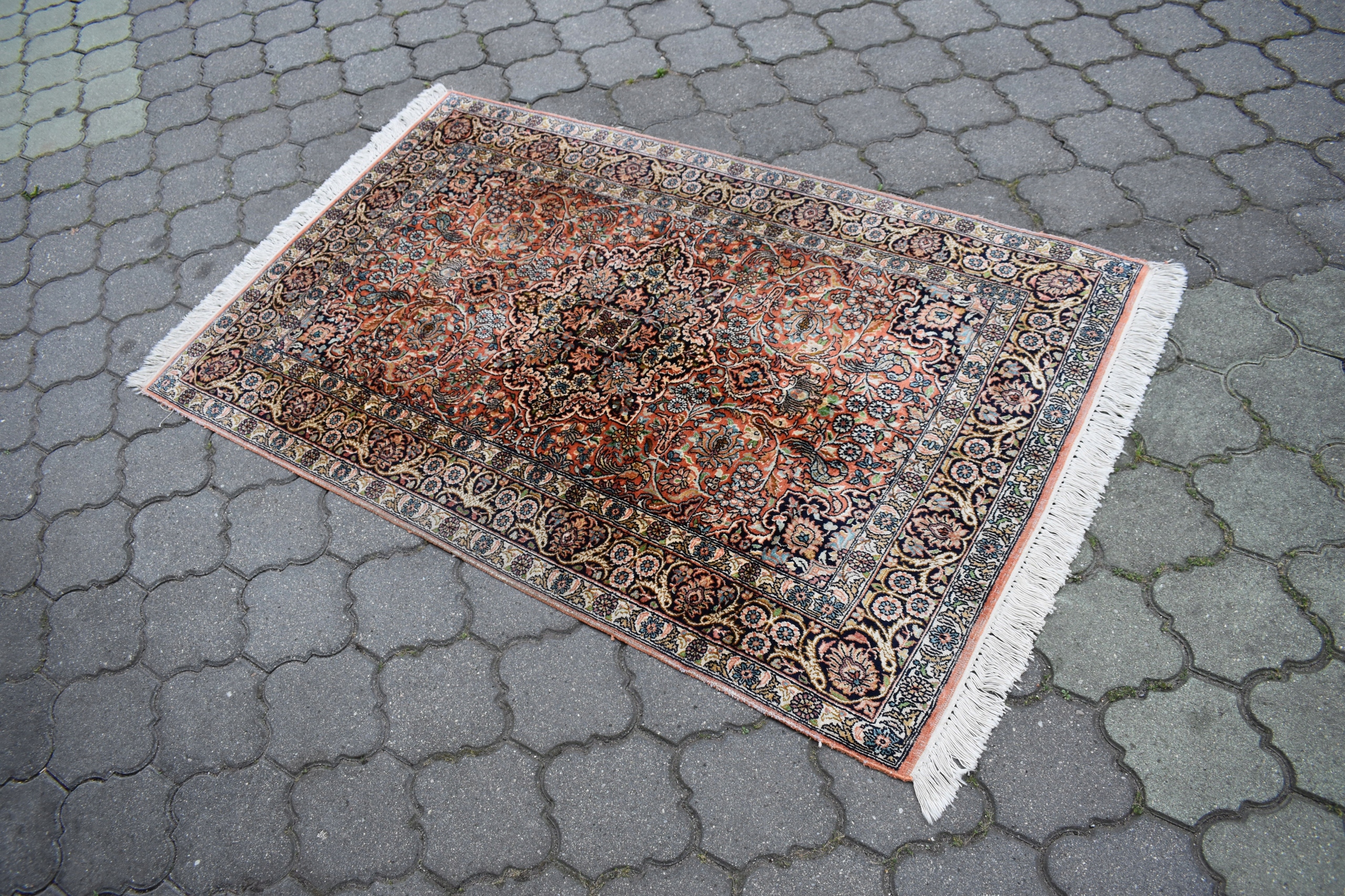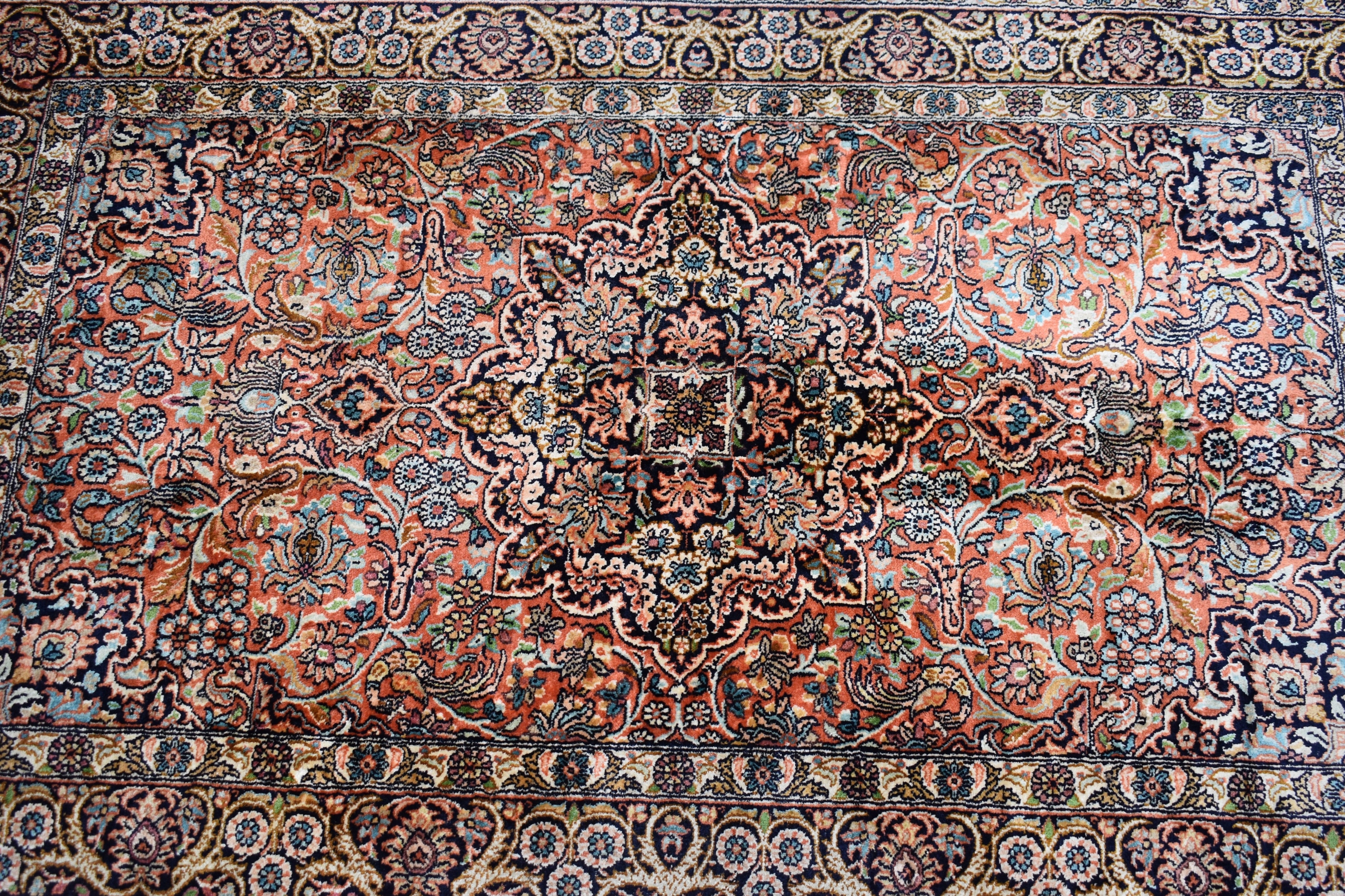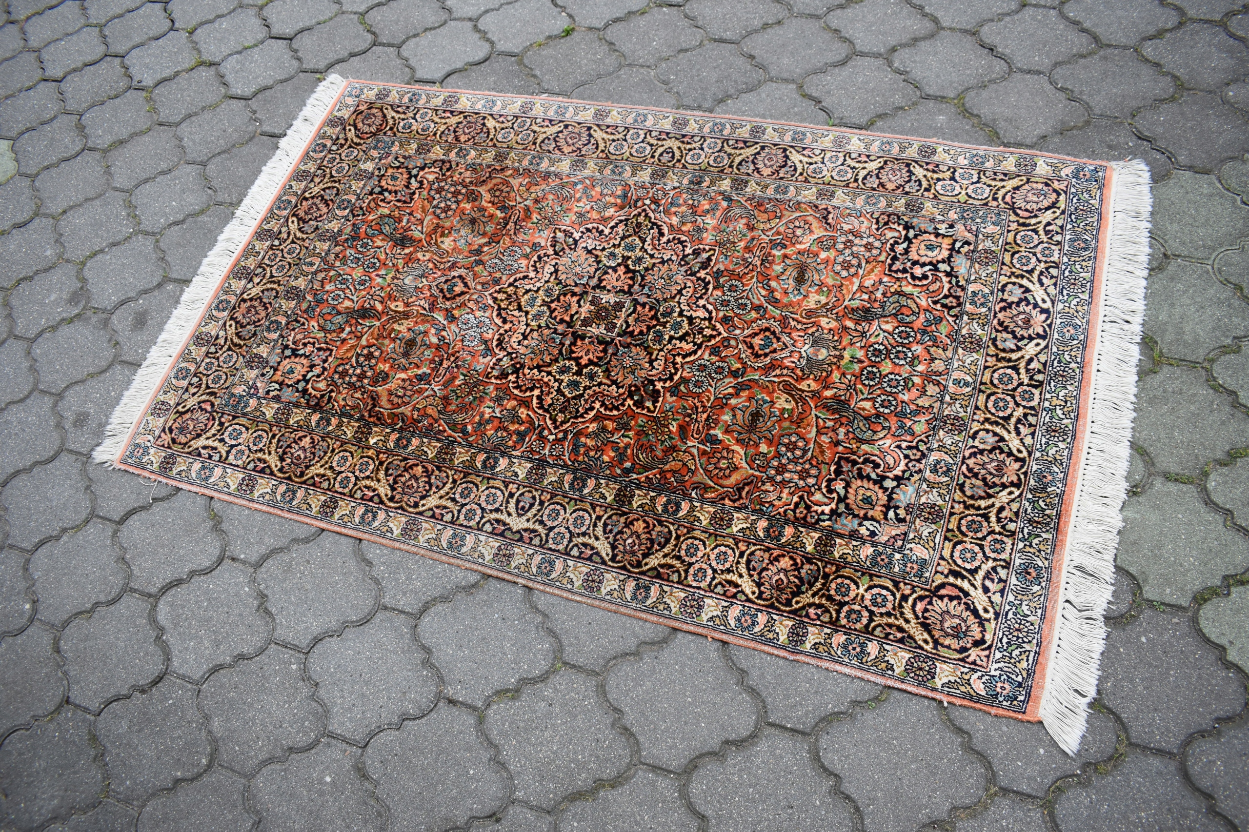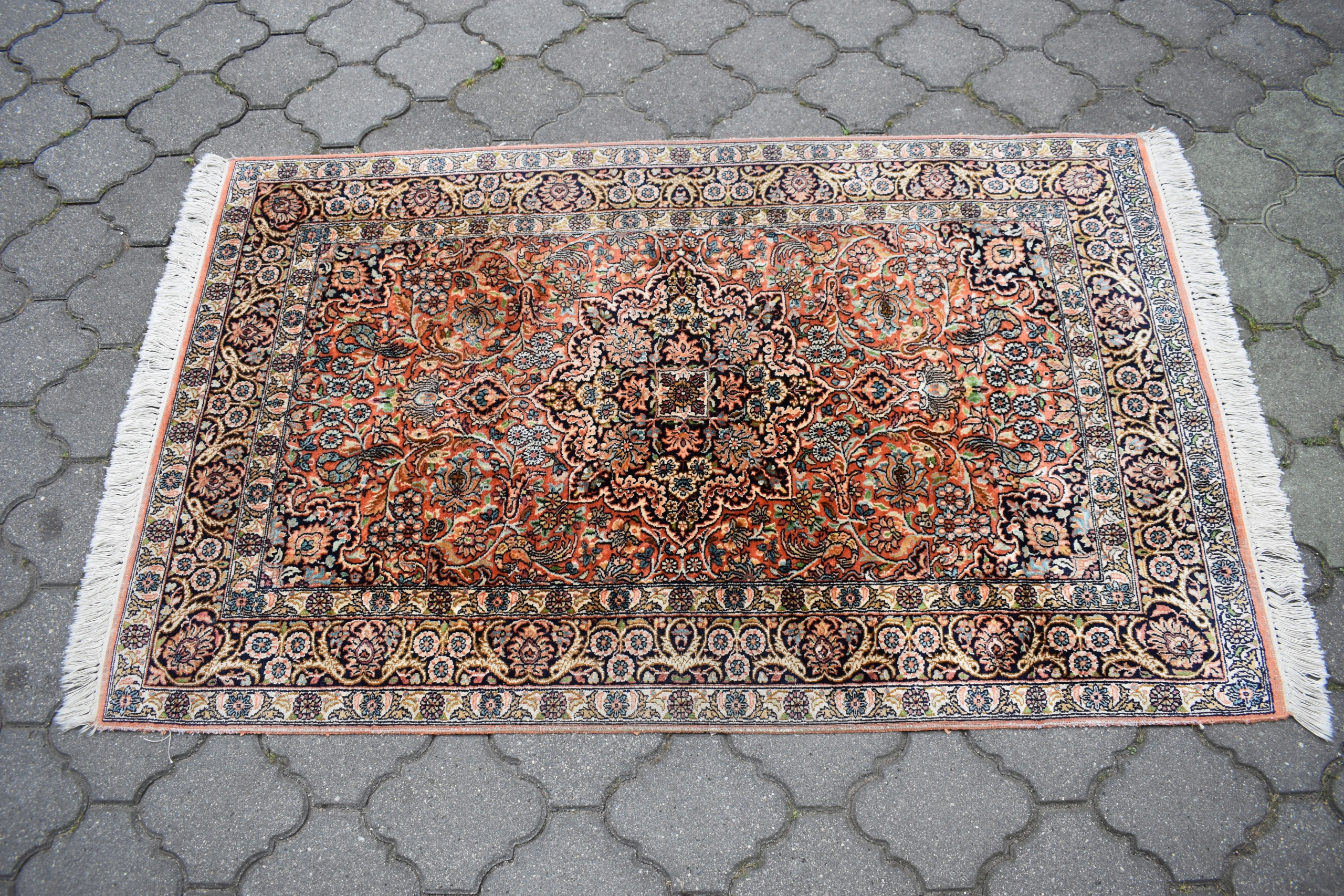 На наступному аукціоні я пропоную вам гарний, виготовлений зі 100% натурального шовку на бавовняній основі - складного, ручного ткання - блискучий килим - GHOM.