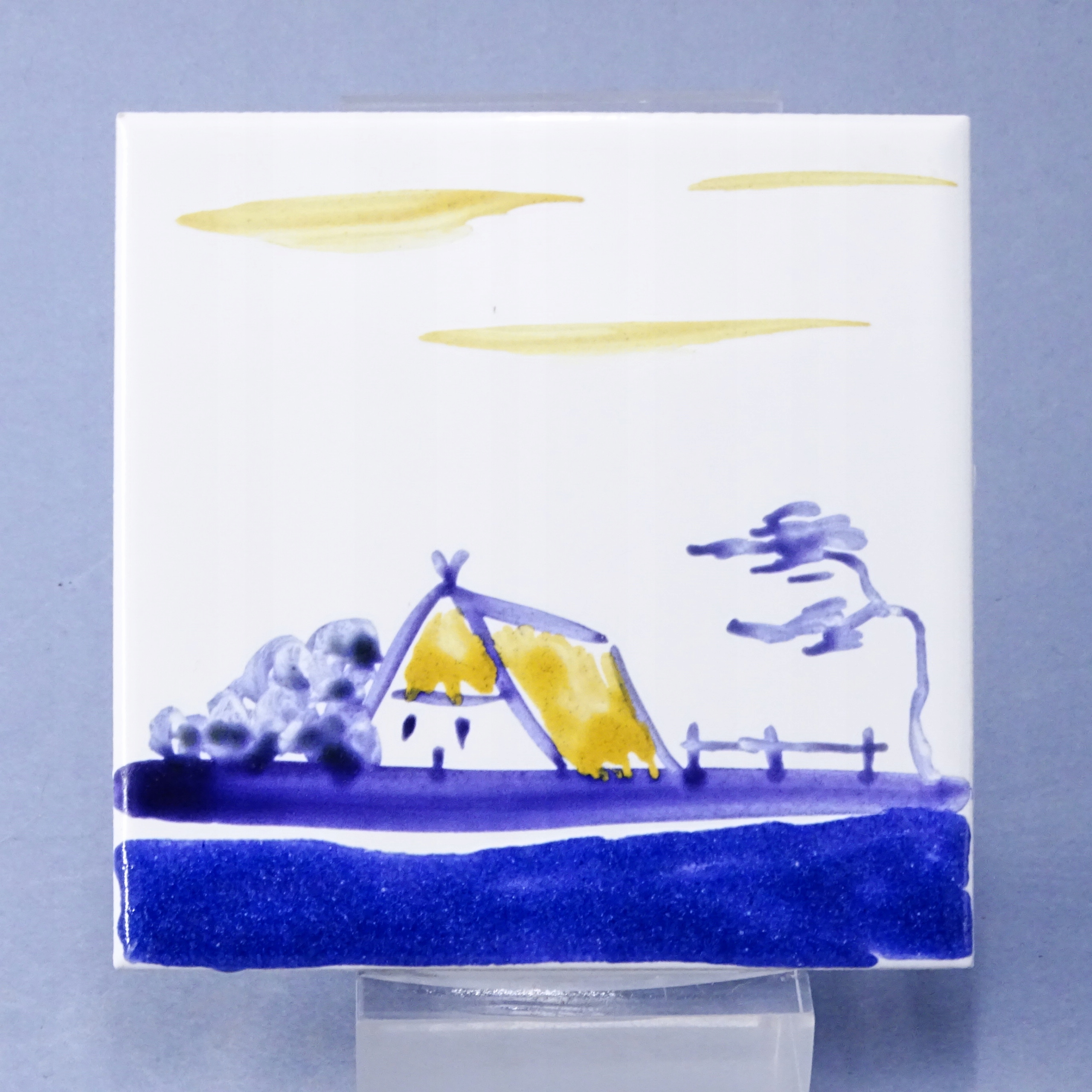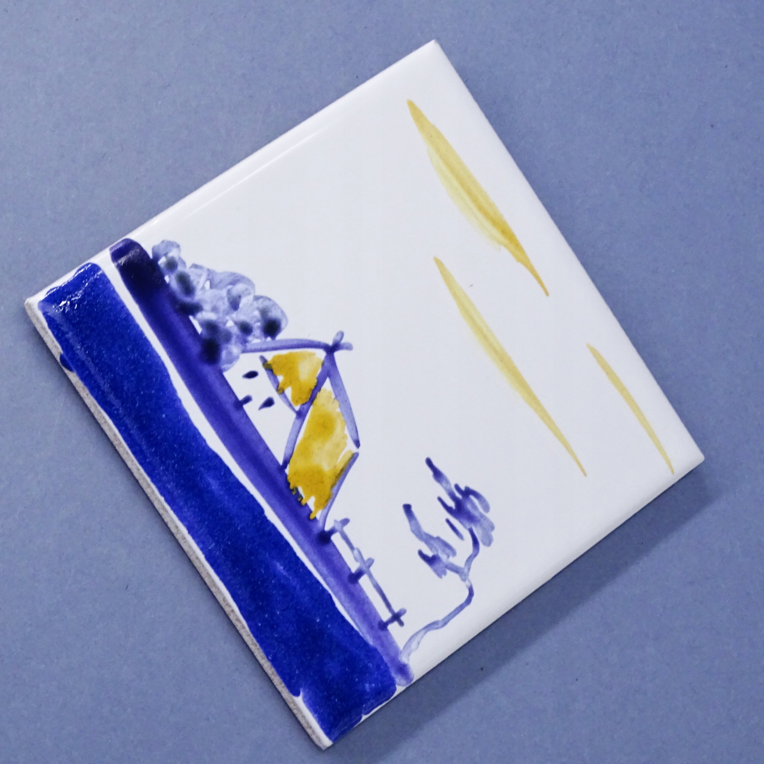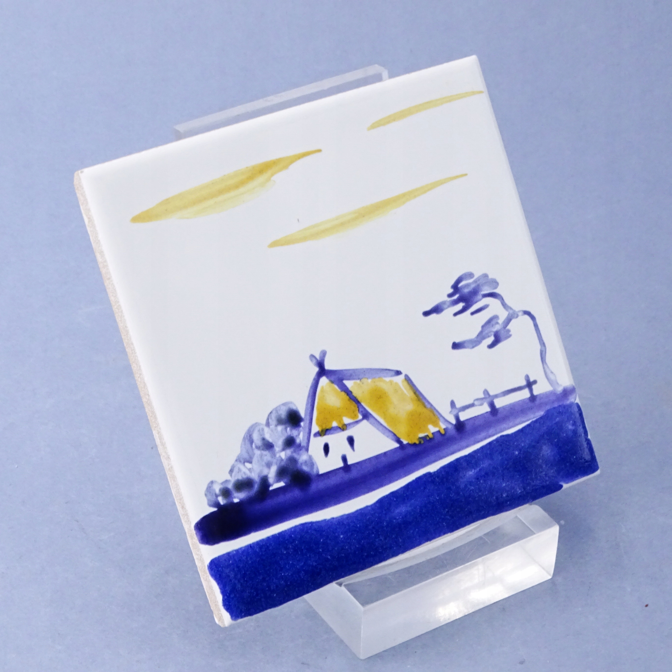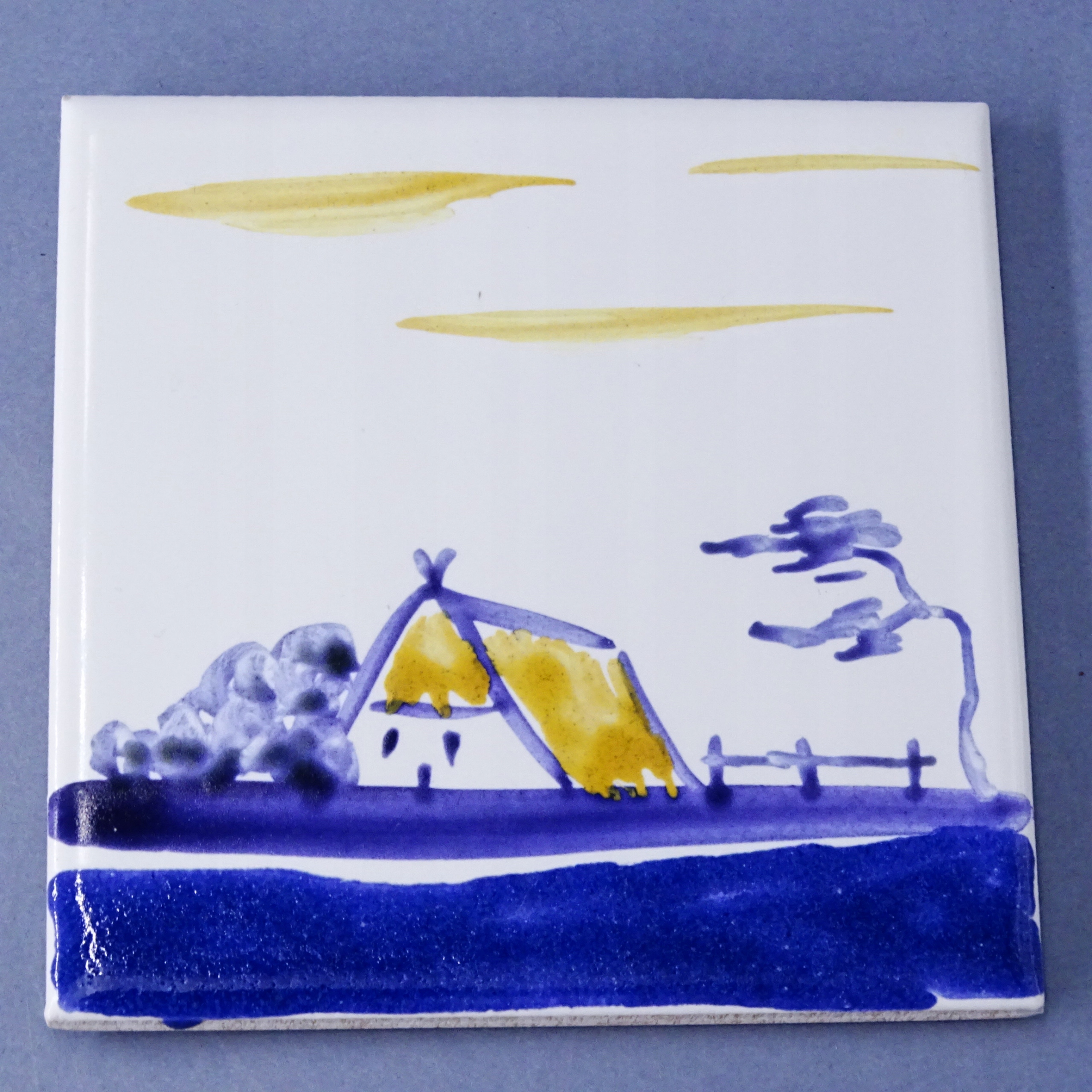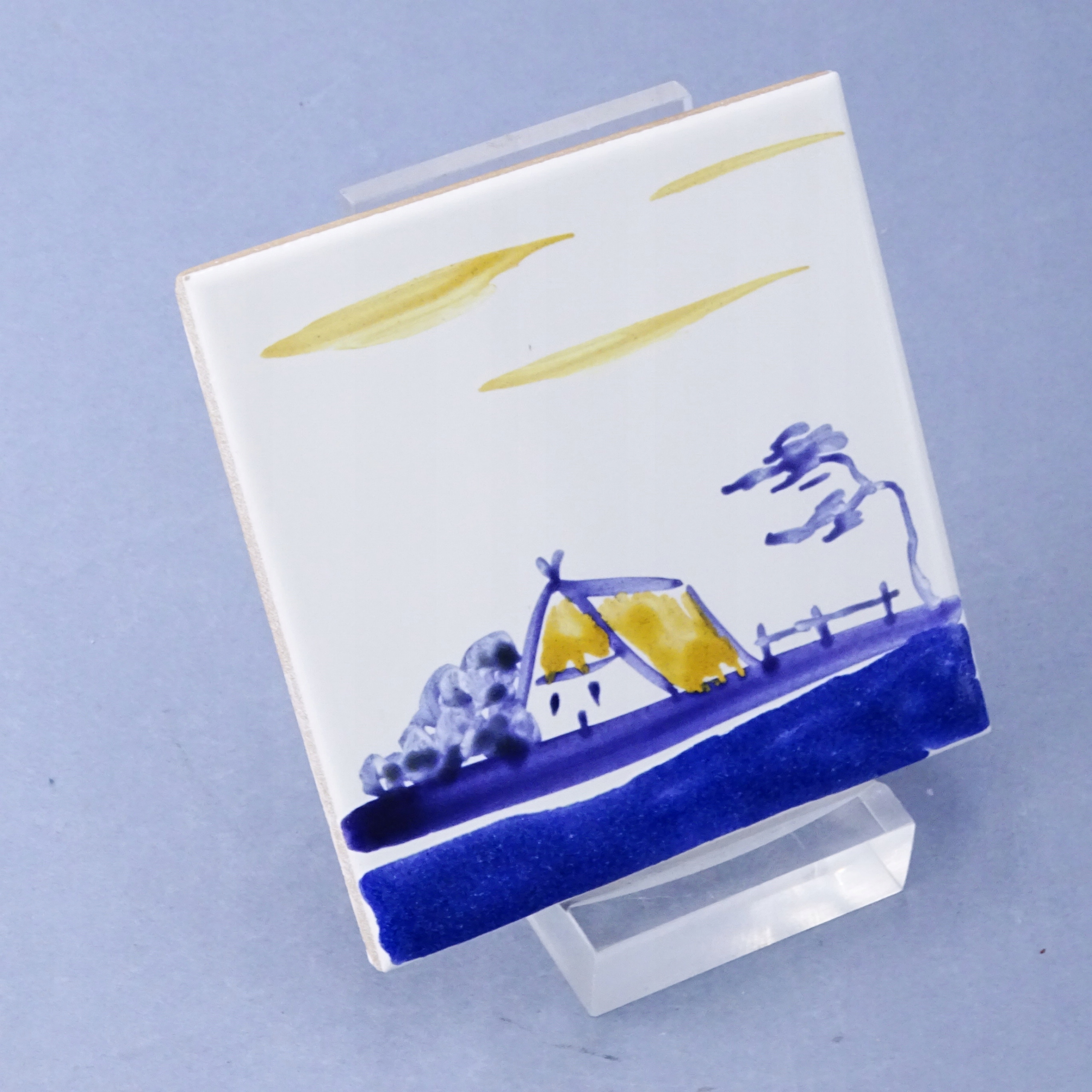 PIĘKNY RĘCZNIE MALOWANY KAFEL KAFELEK DOM DRZEWO