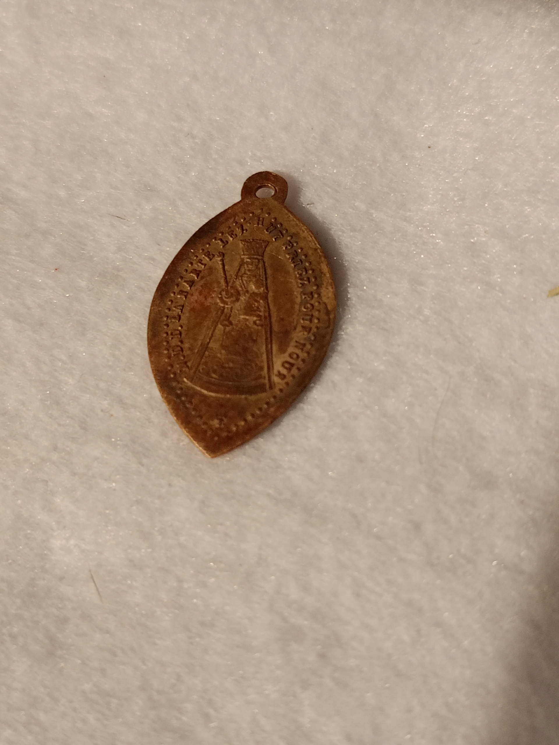 Предметом аукціону є красивий старовинний медальйон. На медальйоні – Діва Марія. Виготовлений з бронзи. Розміри ; 2,6 х 1,5 см. Стан хороший (сліди часу) видно на фото. Вживані товари.