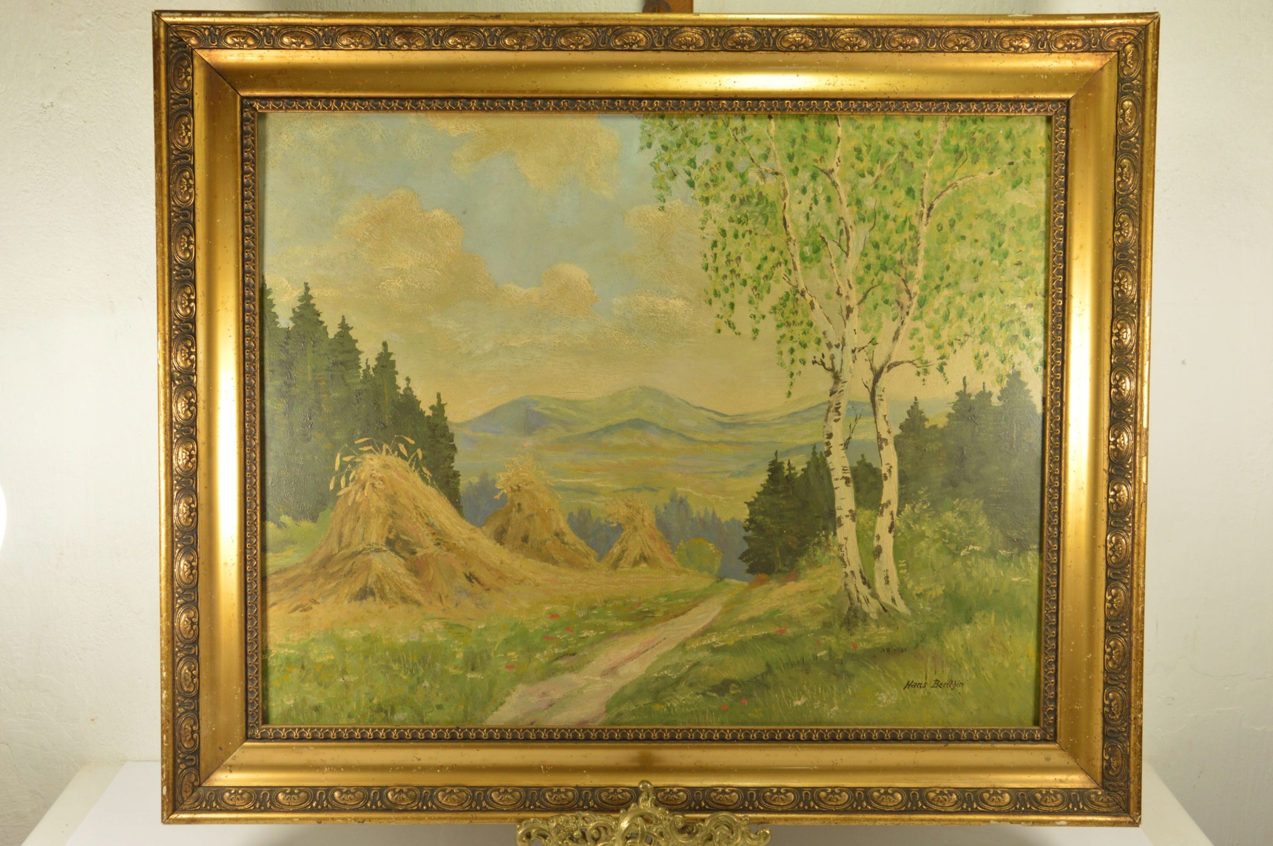 PIĘKNY STARY OBRAZ RAMA PEJZAŻ HANS BENTHIN TANIO!