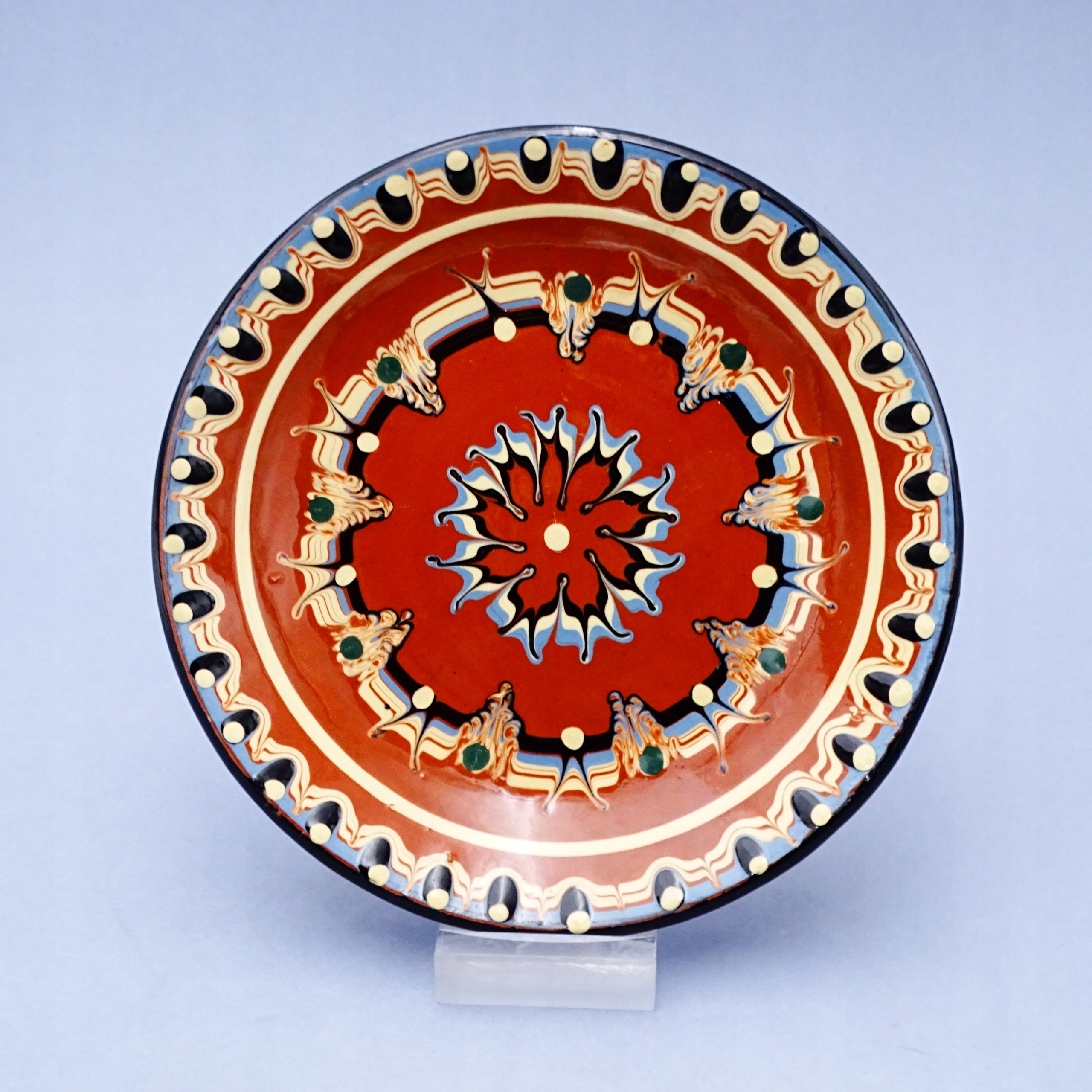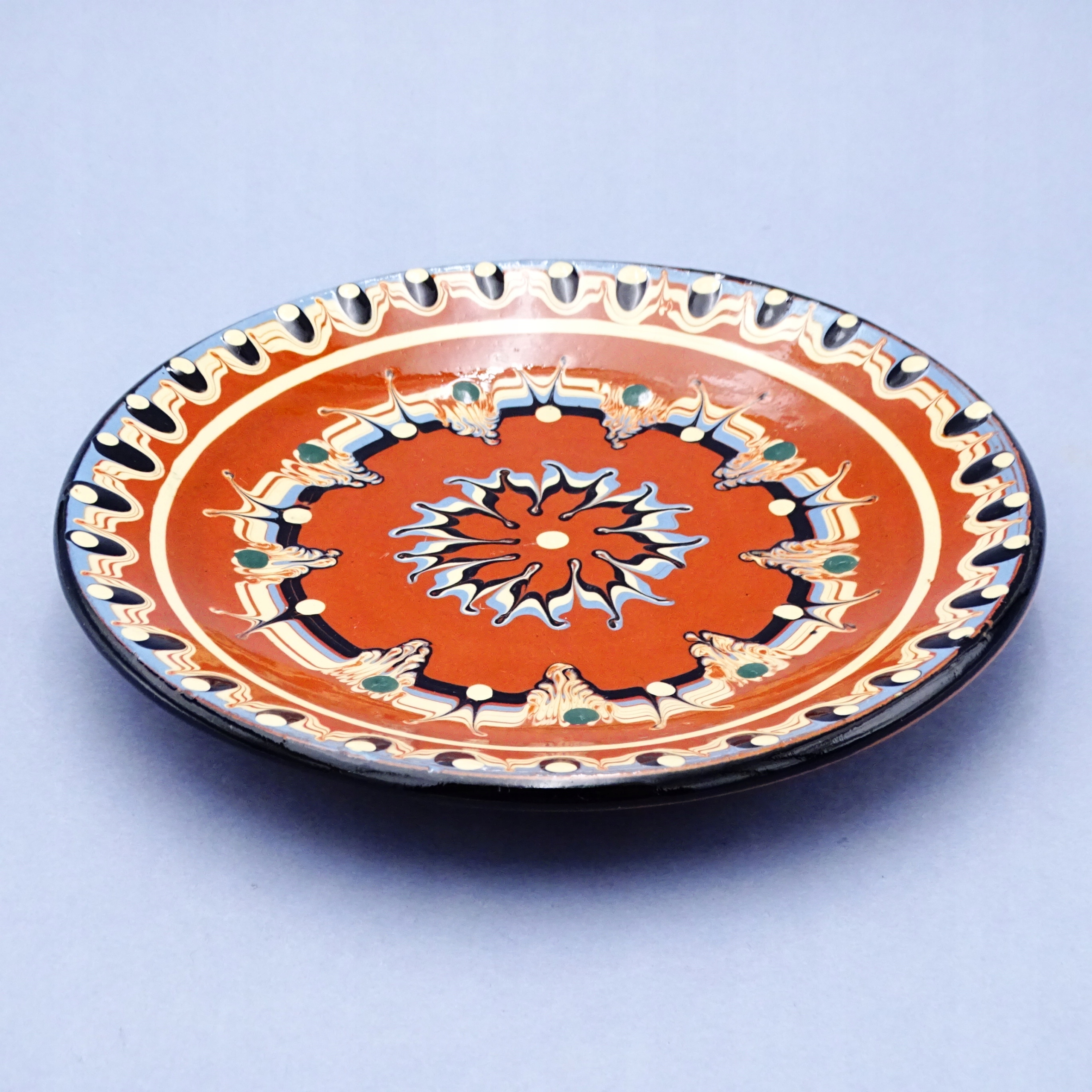 piękny TALERZ GLINIANY NAŚCINNY STYL LUDOWY FOLK ręcznie malowany