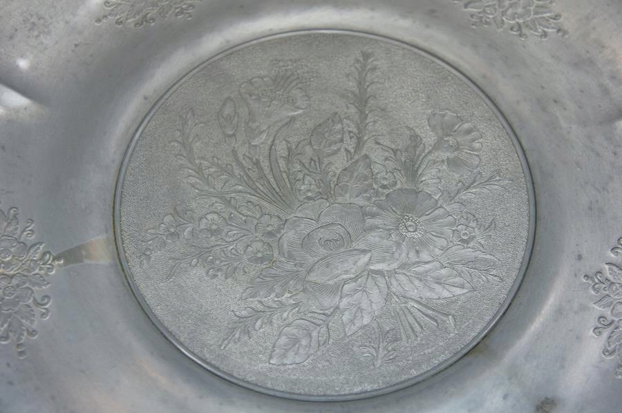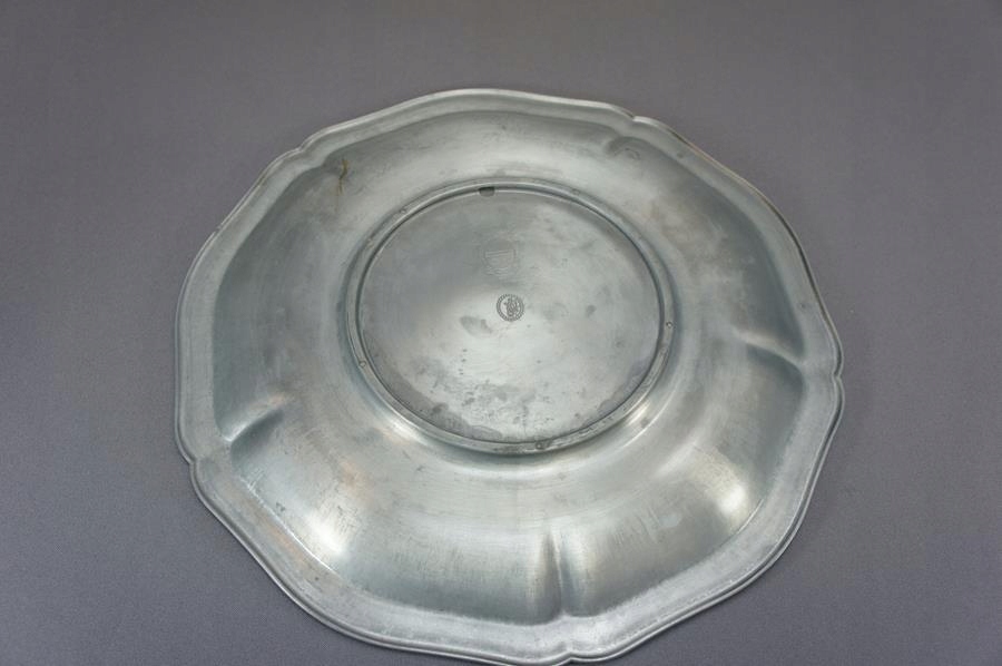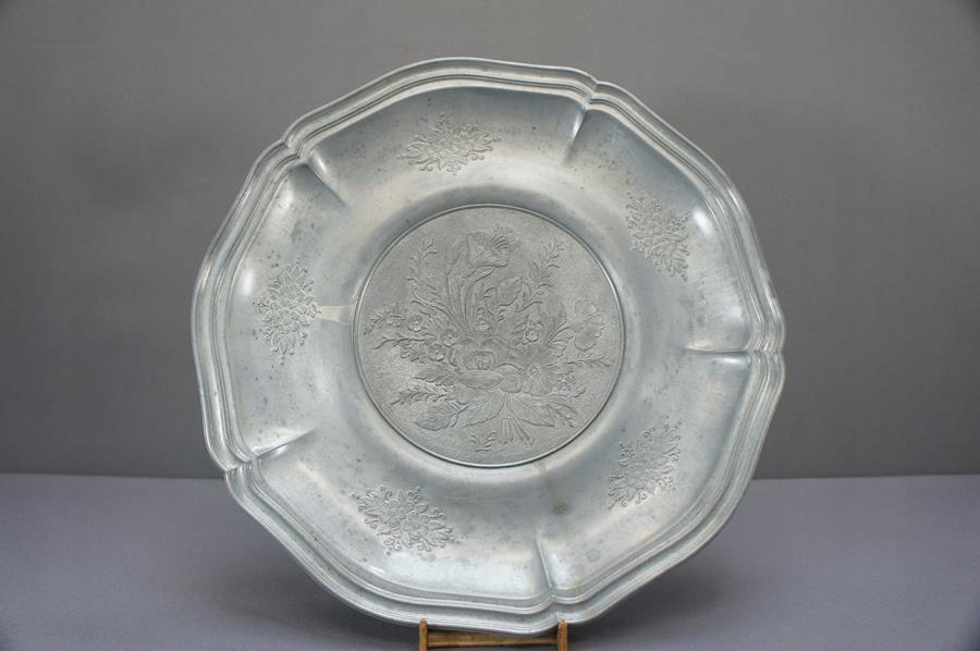 PIĘKNY WISZĄCY TALERZ CYNOWY KWIATY !!