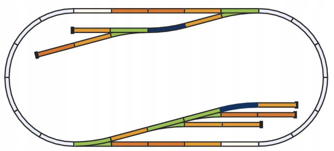 Набір містить доріжки, позначені на малюнку зеленим, помаранчевим, темно-синім і синім кольорами.