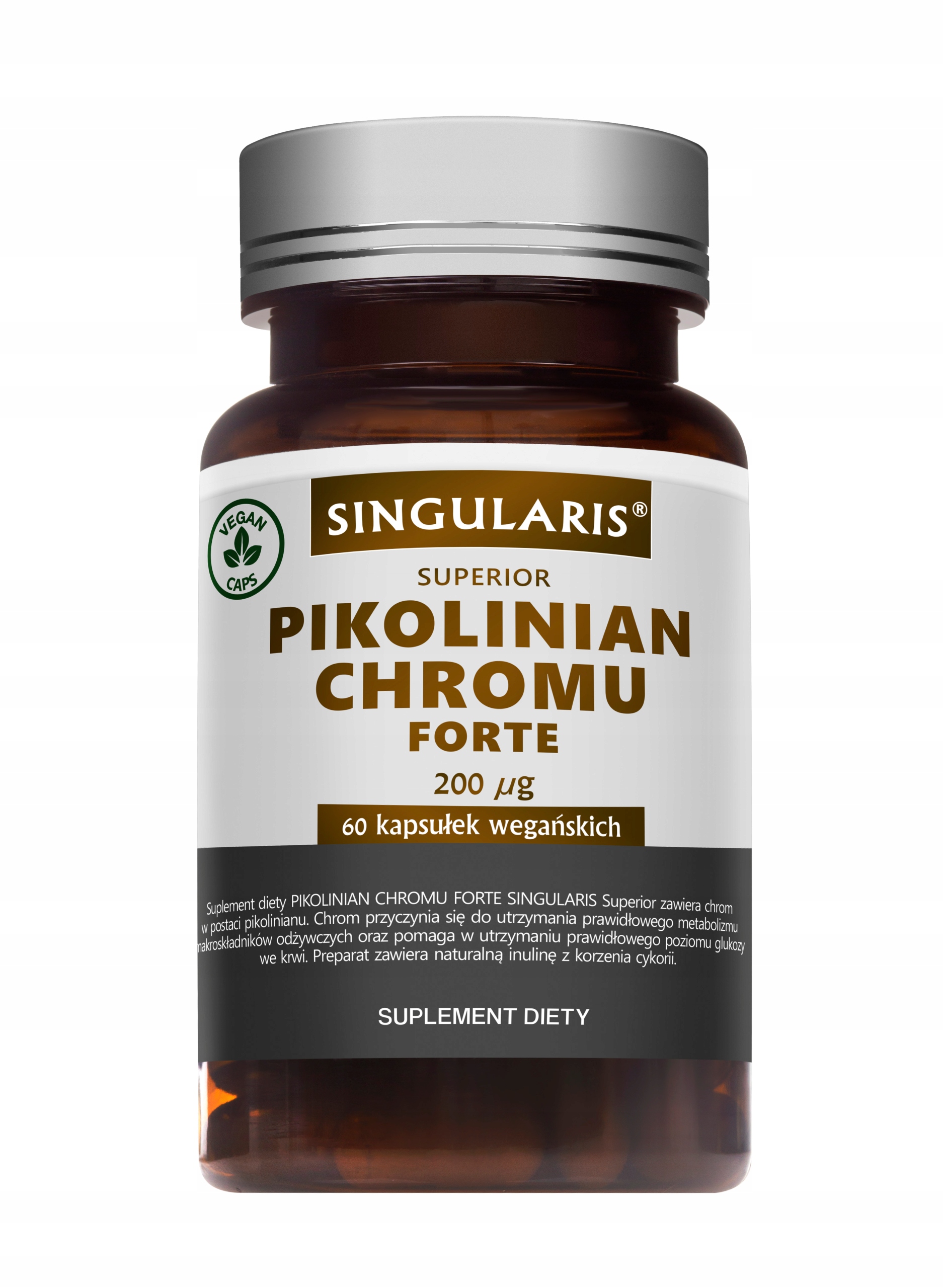 Supement Diet Pikolinian Chrome Forte Superior містить хрому у вигляді піколінату. Хром сприяє підтримці належного метаболізму харчових макроелементів і допомагає підтримувати правильний рівень глюкози в крові. Підготовка містить натуральний інулін із кореня цикорію.