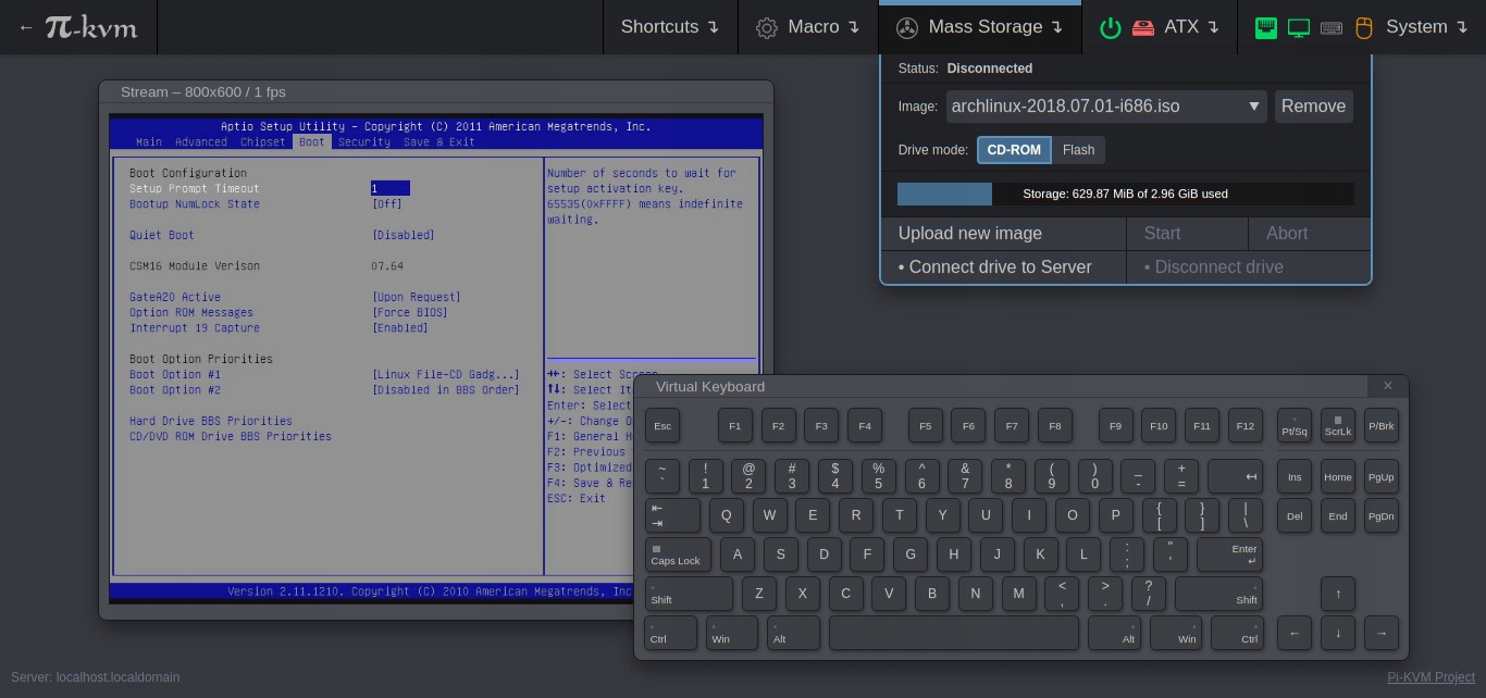 У поєднанні з Raspberry Pi 4 PiKVM дозволяє вмикати/вимикати або перезавантажувати комп’ютер, налаштувати UEFI/BIOS і навіть перезапустити інсталяцію операційної системи за допомогою віртуального компакт-диска або флешки.