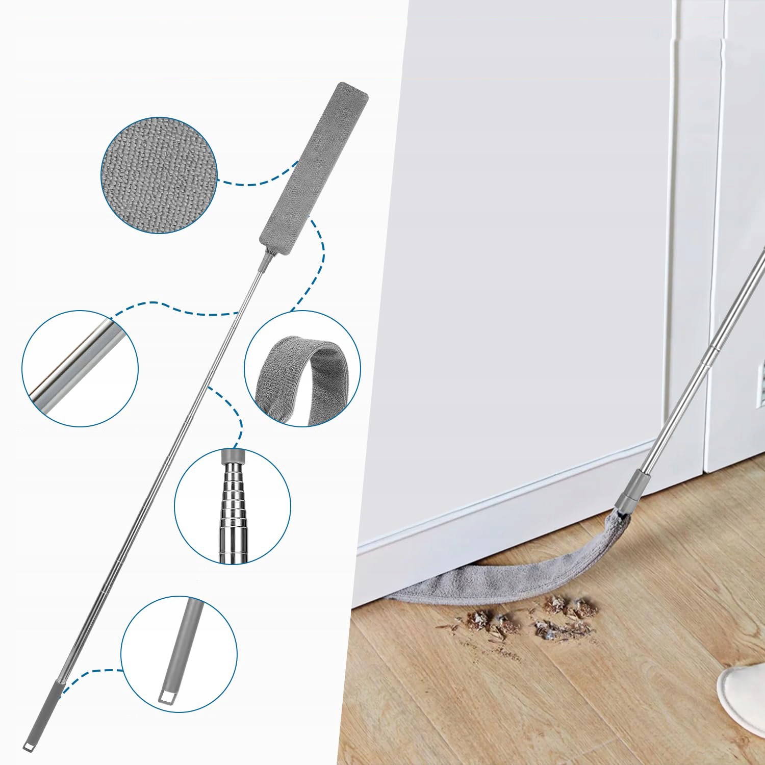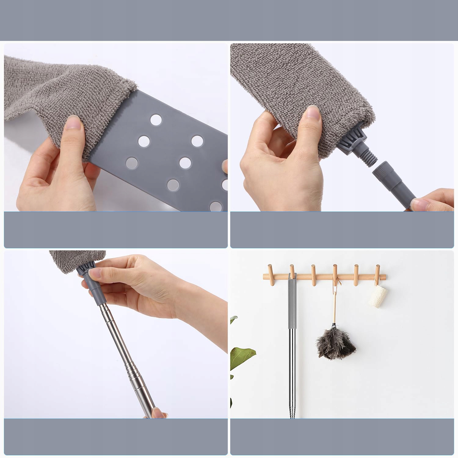 ручка з нержавіючої сталі для видалення пилу; Довжину можна регулювати, якщо це необхідно. Після повного розподілу зона очищення може досягти 2,5 метрів . Матеріал тканинної тарілки ПП гнучкий і може бути зігнутий, а тканинна кришка виготовлена з тонких волокон, які є делікатними і м'якими.