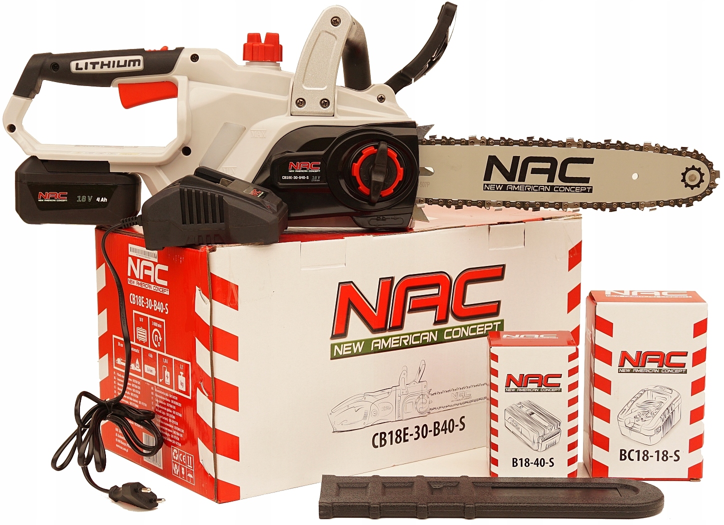 - акумуляторна пила NAC CB18E-30-B40-S у коробці компанії NAC