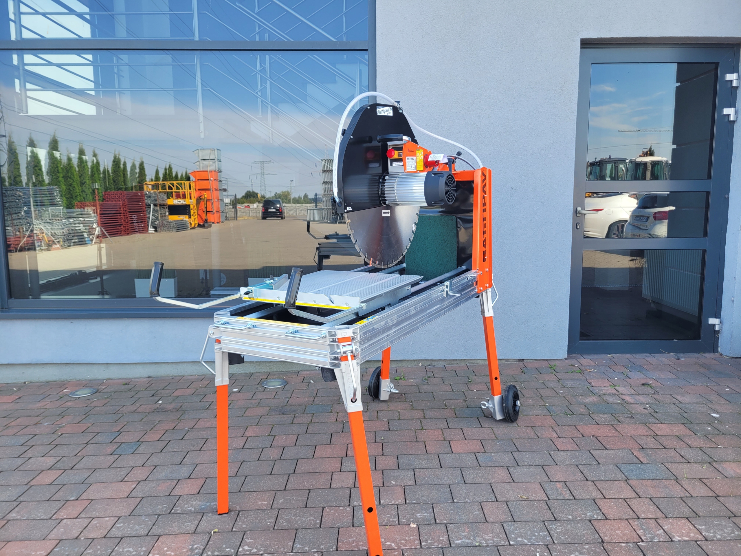 Сучасний дизайн з інноваційними технічними рішеннями. Пила дуже міцна та довговічна, що забезпечує чудову точність. Підходить для різання цегли, силікату, мармуру та інших будівельних матеріалів. Робить розрізи, пересуваючи рухомий робочий стіл. Призначений для роботи з алмазними дисками діаметром Ø 650 або Ø 700 мм.