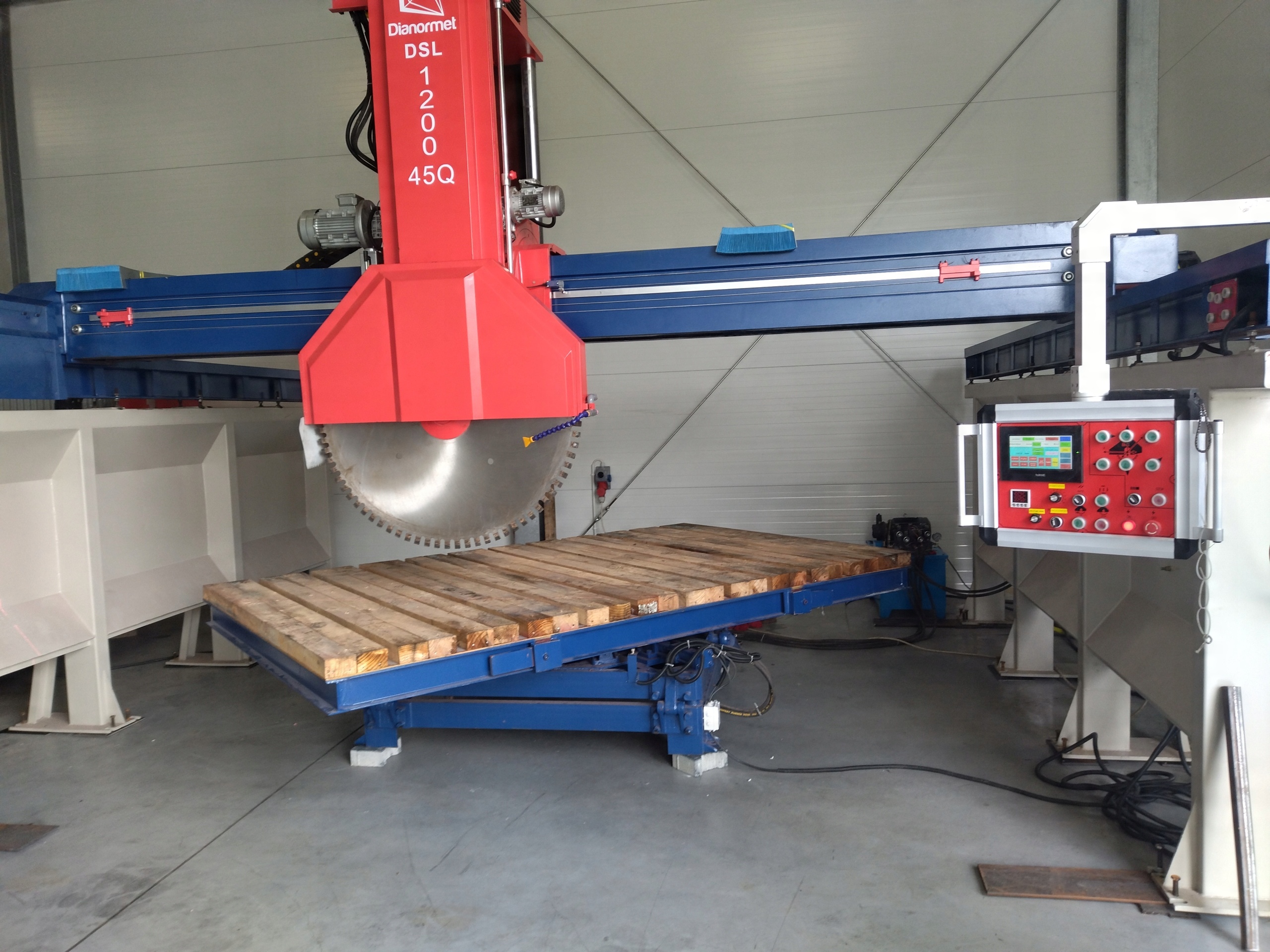 Кам'яний круглий, DSL1200-45Q сталевий настінний мостовий мост пила автоматично контролюється, може бути повністю автоматизованою. Машинні деталі виготовлені з високоякісних матеріалів. Автоматичне управління забезпечує точність різання. Максимальний діаметр диска до 1200 мм. Наша мостова пила ідеально підходить для малих, середніх та великих рослин, які потребують здатності коштувати в ручному та автоматичному режимі. Ця пила з мостовою конструкцією, призначена для різання кам'яних плит до певного розміру. Нахил до 45 ° з можливістю різання кроку (зупинка нахилу кожні 1 °) дозволяє вирізати гвинт. Багаторічний бот працює під час різання прямо і під кутом. Машина має гідравлічно керовану таблицю, підняту до 85 °, обертаючи 0 ° - 360 ° із зупинкою кожні 90 °, завдяки роботі з цією машиною дозволяє швидку та зручну обробку каменю.