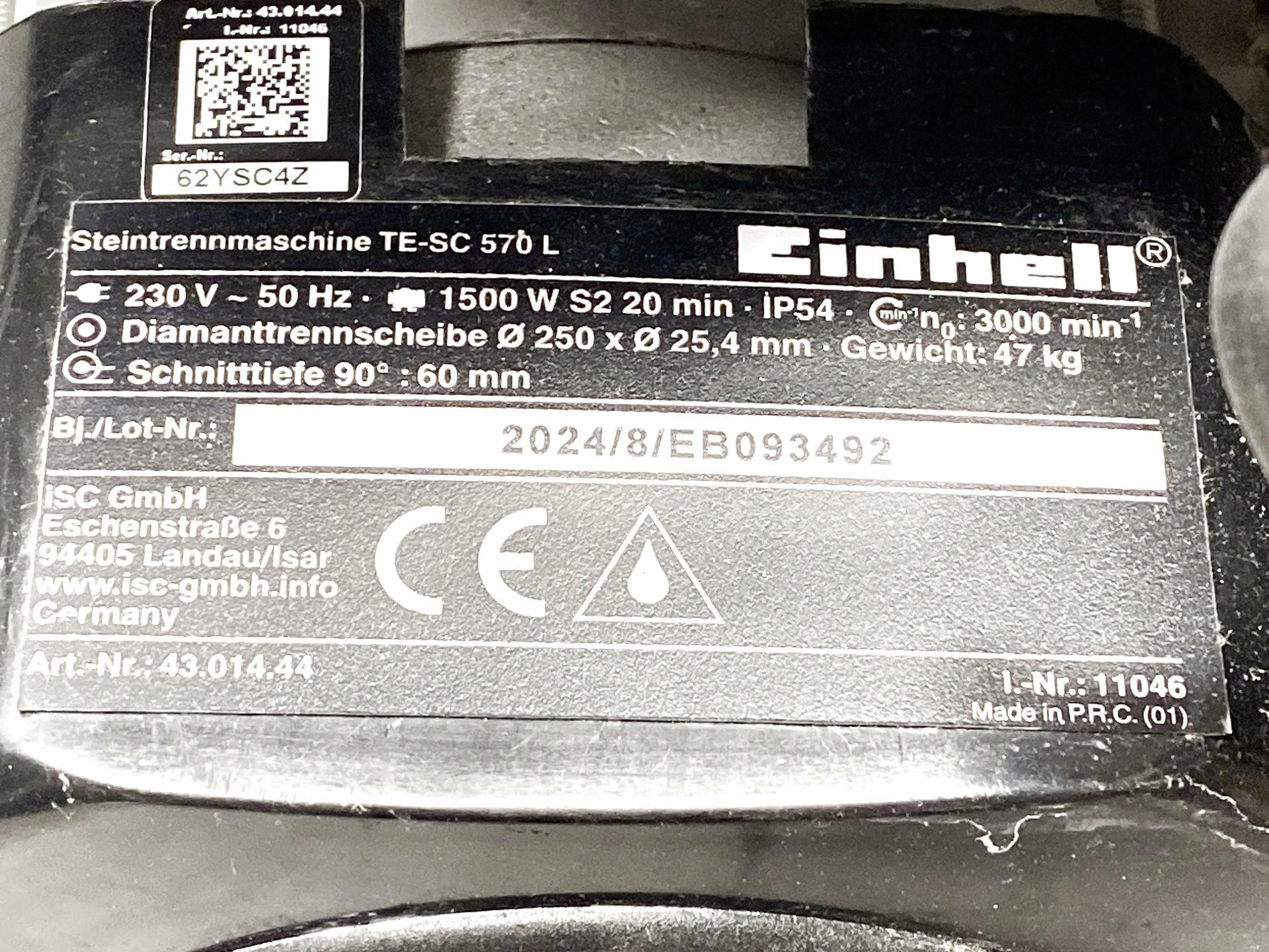 Заказывая «Бетонная пила Einhell TE-SC 570 L 1500 Вт» данный товар из каталога «Обработка камня» вы можете быть уверены, что после оформления заказа, доставки в Украину, вы получите именно то, что заказывали, в оговоренные сроки и европейского качества.