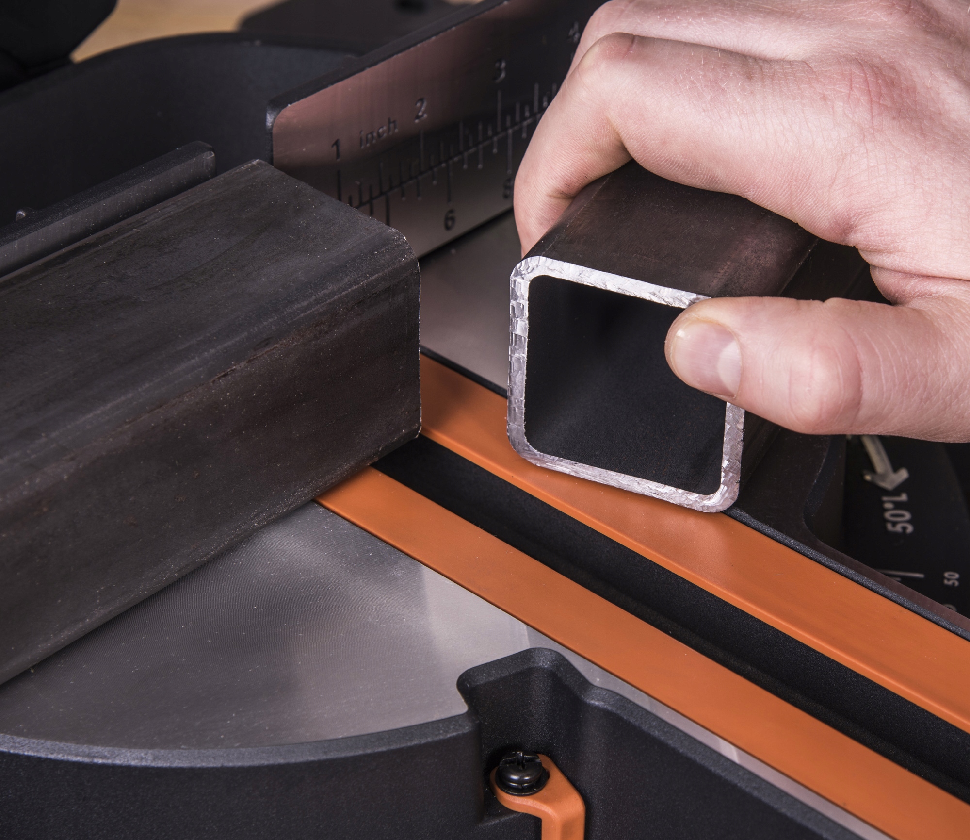 Пристрій дозволяє різати матеріали з максимальним перерізом 210x56 мм. Він ідеально підходить для різання мідних і пластикових труб, алюмінієвих профілів, плит МДФ, дощок, плінтусів, деревини твердих порід, як-от ясен і дуб, і багатьох інших матеріалів.