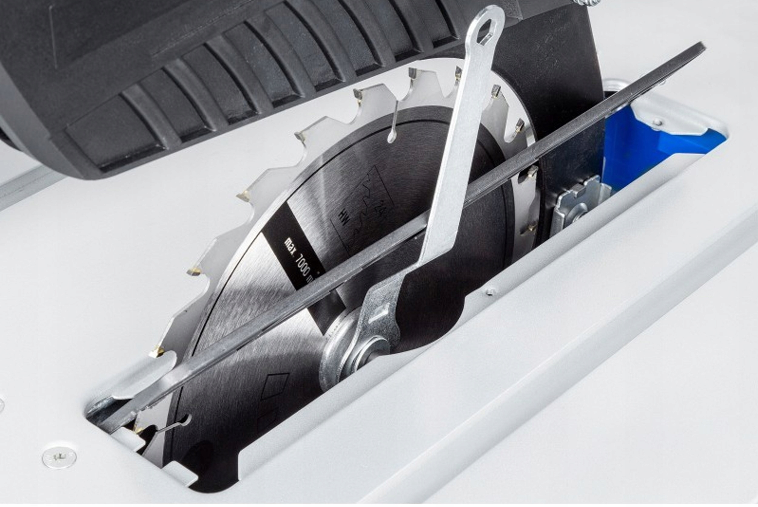 Набір також включає: кутову лінійку, паралельну напрямну та штовхач, що підвищить як точність різання, так і безпеку роботи. Набір гайкових ключів допоможе швидко зібрати та розібрати окремі деталі.