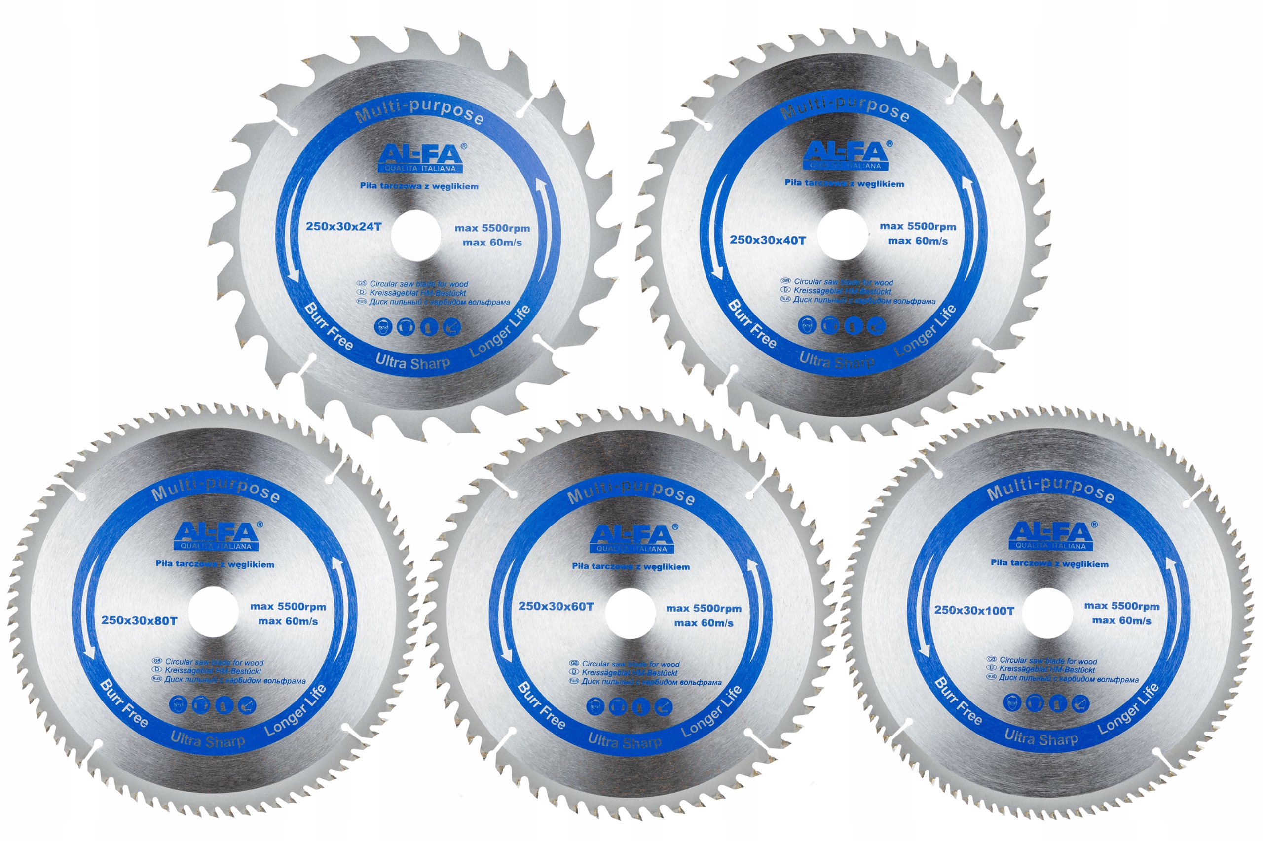 У пропонований набір також входить набір з 5 дисків Widia розміром 250x30x 24, 40, 60, 80, 100T