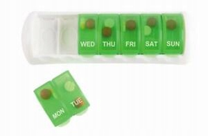 Застосування медикаментозного органайзера дозволяє здійснювати плановий розподіл препаратів відповідно до правил, передбачених лікар або фармацевт . 7 відділень - це гарантія правильного дозування таблеток протягом тижня. В окремих відсіках є скорочені описи днів тижня (англійською мовою):
