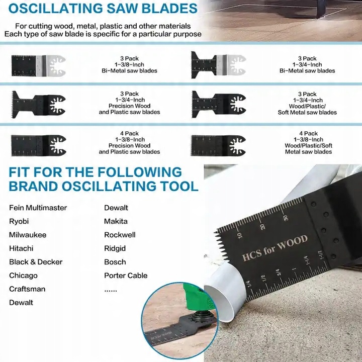 Універсальна сумісна система кріплення - швидкознімні пилкові полотна сумісні з багатьма осцилюючими інструментами на ринку, такими як: Parkside, Fein, Multimaster, Ryobi, Milwaukee, Hitachi, Black & Decker, Chicago, Craftsman та інші. p> p>