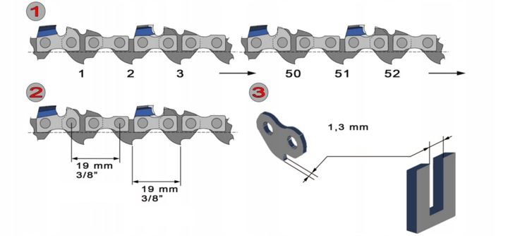 ✅ УНІВЕРСАЛЬНЕ ЗАСТОСУВАННЯ: Ланцюги підходять для пилок із розміром шини 52 ланки - 3/8" - 1,3 мм, що робить їх універсальними та зручними для використання в різних моделях пилок. Це ідеальне рішення для багатьох робіт з різання деревини.