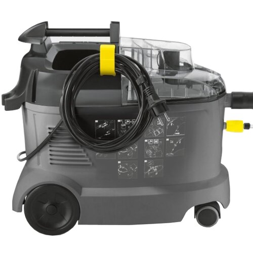 Пилосос KÄRCHER Puzzi 8/1 C — це професійне обладнання для вашого дому. Пристрій характеризується високою потужністю всмоктування і ретельно очищає ворс килима, усуваючи неприємні запахи і повертаючи йому свіжий вигляд. Після роботи на ньому залишається лише невелика залишкова вологість, тому поверхню можна використовувати практично відразу після очищення, що робить її ідеальною для офісів і готелів.