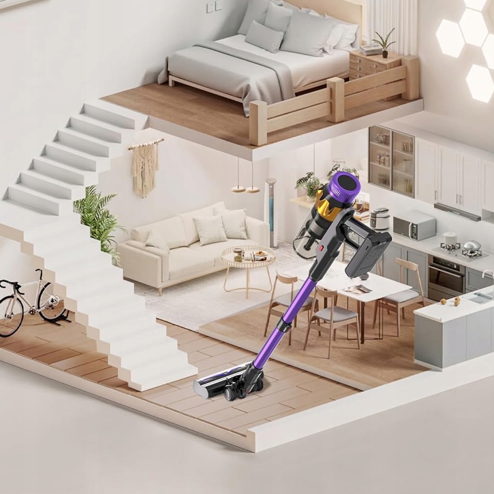 Зустрічайте універсального помічника в прибиранні! Цей потужний бездротовий вертикальний пилосос поєднує в собі потужність основного пилососа зі зручністю легкого ручного пилососа. Завдяки повному набору з 6 аксесуарів ви зможете ідеально очистити будь-яку поверхню у вашому домі, від твердих підлог і килимів до диванів, автомобілів і важкодоступних куточків. Його сучасний дизайн і передові технологічні функції роблять прибирання легким, швидким і ефективним.