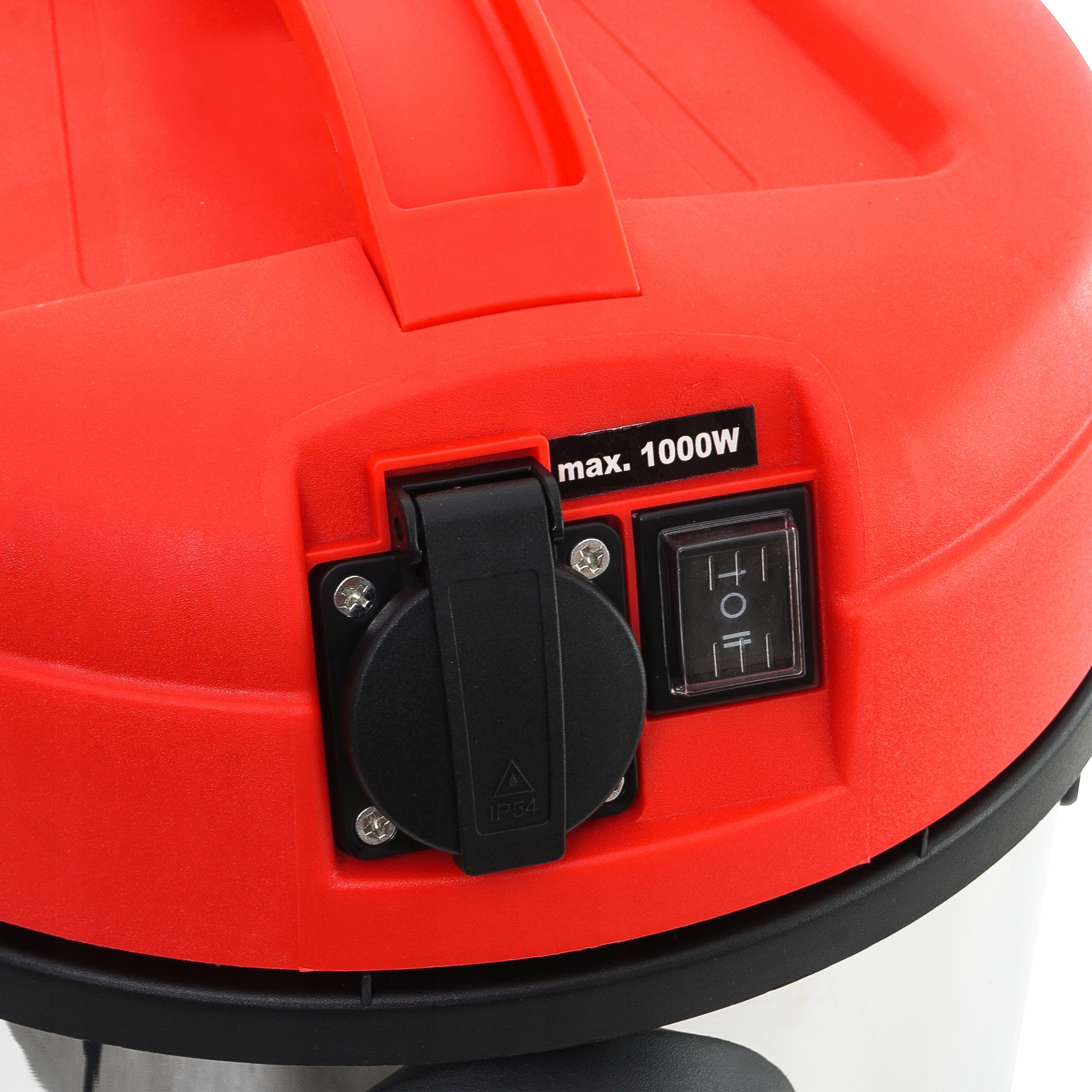 Вбудована розетка, розташована у верхній частині кришки пилососа, використовується для підключення електрообладнання та інструментів потужністю до 1000 Вт. Його можна використовувати зі шліфувальною машиною для штукатурки, шліфувальною машиною для дерева та іншими електроінструментами з виходом для відведення пилу.