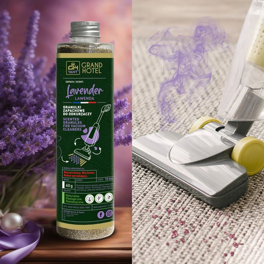 Ароматичні гранули Grand Hotel нейтралізують неприємні запахи з різних поверхонь. Дрібні натуральні гранули не змінюють колір, а їх легкість дозволяє легко всмоктувати їх у пилососи чи роботи-прибиральники. Просто розсипте гранули та залиште на кілька або кілька десятків хвилин, щоб приємний парфумерний аромат освіжив м’які меблі чи килими та залишив приємний аромат навколо. Унікальні маленькі та легкі гранули не дряпають камеру пилососа.