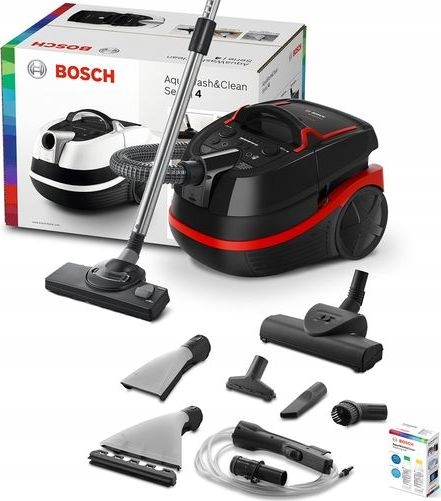 Bosch Серія 4 BWD421POW. Максимальна споживана потужність: 2100 Вт. Модель: Вакуумний циліндр, Тип очищення: Сухе та вологе, Тип контейнера для пилу: Комбінований. Вакуумна фільтрація повітря: HEPA. Колір товару: чорний, червоний