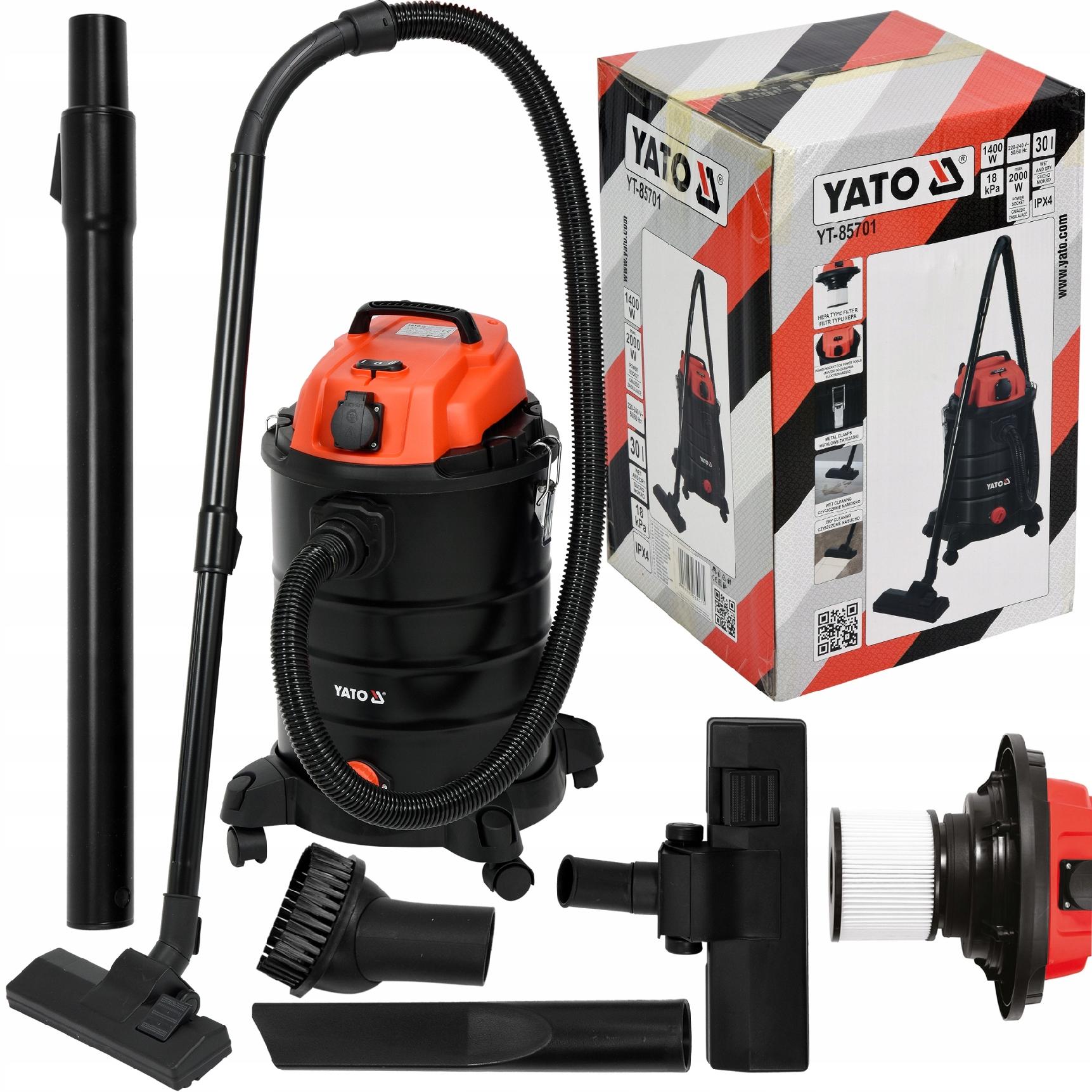 Мастерський пилосос YATO з потужністю 1400 Вт і потужністю всмоктування 18 кПа. Має ємність 30 л. Пилосос оснащений телескопічною антистатичною трубкою. Також має вбудовану розетку для електроінструменту. Забезпечує вологу та суху роботу. Також можна використовувати як повітродувку.