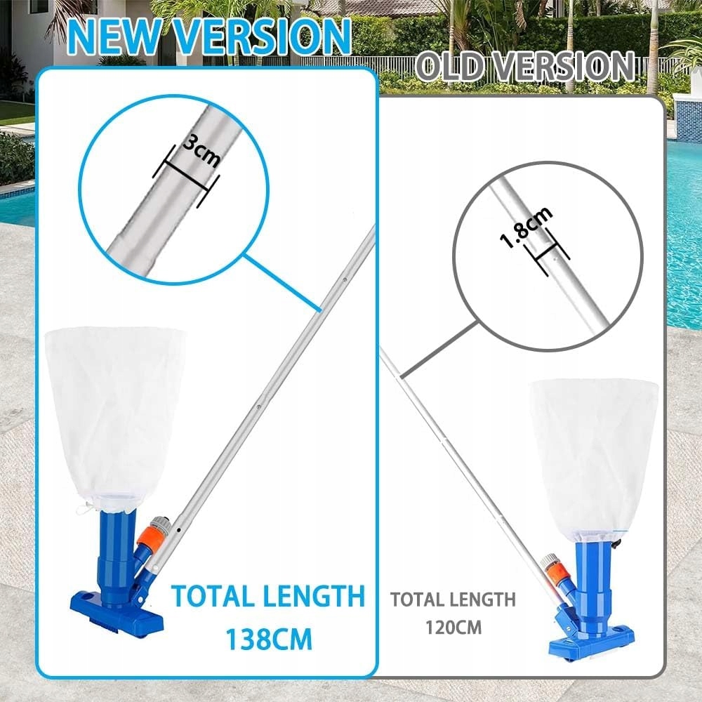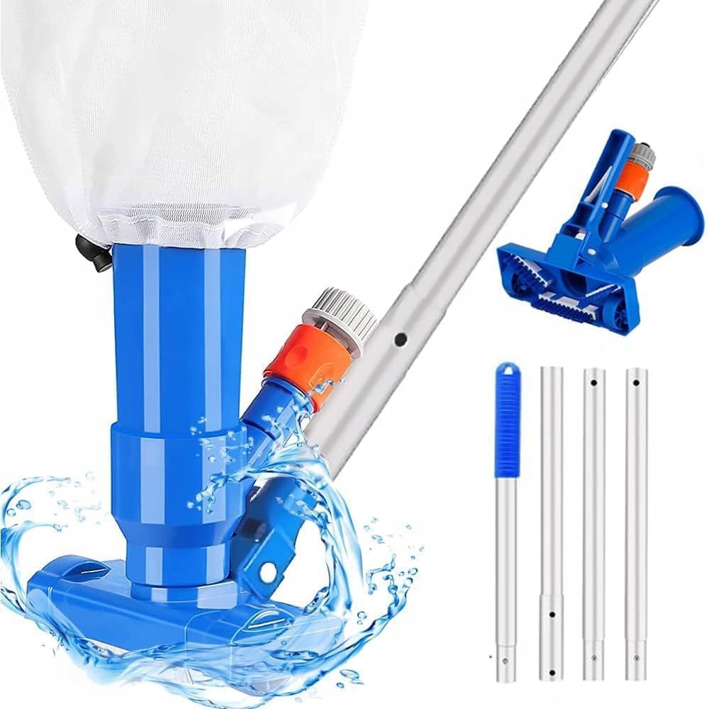 - Вміст упаковки: 1 пилосос для басейну, 1 телескопічний стрижень із чотирьох частин (макс. 140 см у зібраному вигляді), 1 з’єднувач для телескопічного стрижня, 1 з’єднувач для шланга, 1 сітчастий мішок. Це практичний набір для чищення басейну.