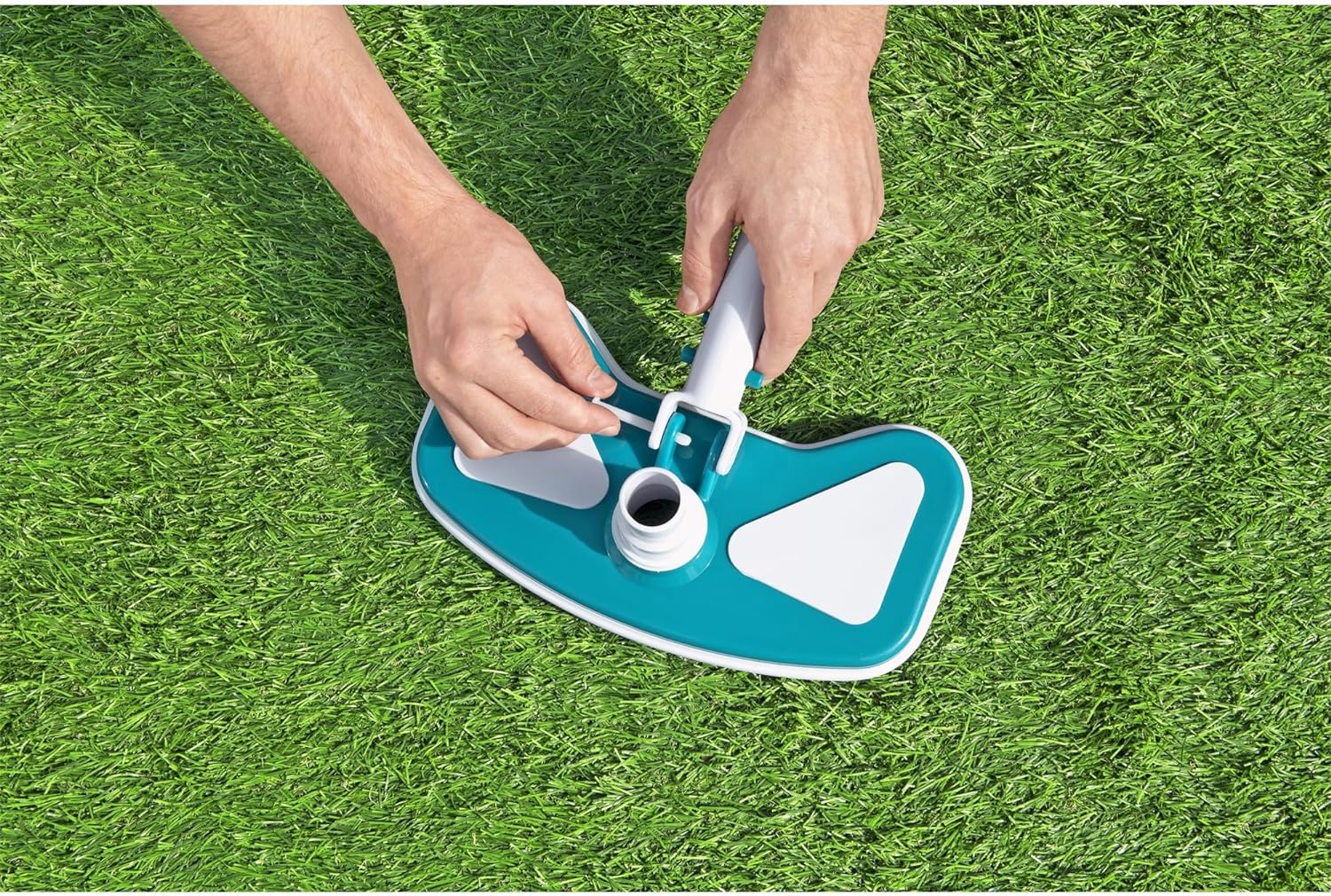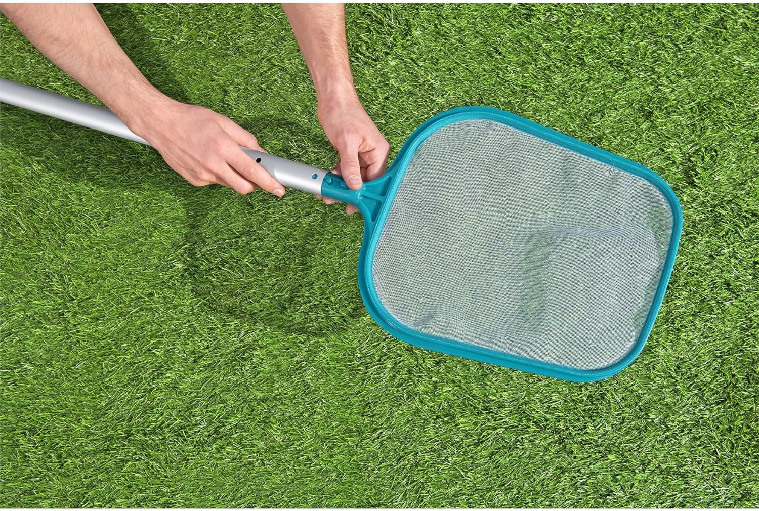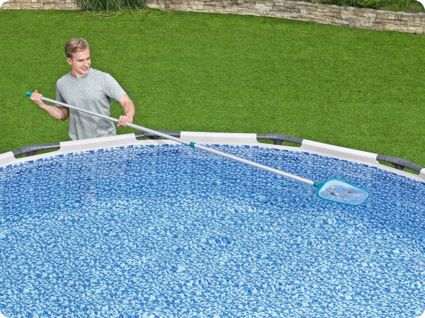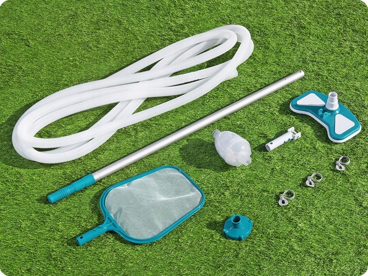 Компактний пилосос для басейну BESTWAY – ідеальний гаджет для чищення стін і дно басейну. Після підключення до фільтруючого насоса, він буде збирати всі домішки в спеціальну камеру для бруду, і навіть найдрібніші будуть затримуватися у фільтрі. Ви можете легко і швидко видалити листя, траву, комах, пісок та інші забруднення у воді. Особлива компактна форма всмоктуючої головки з щітками дозволяє ретельно очистити стінки і дно басейну, а також досягти важкодоступних кутів і щілин. Щітки середньої жорсткості на дні головки пилососа забезпечують оптимальне очищення стінок і дна басейну, а довга алюмінієва телескопічна жердина дозволяє ефективно маневрувати очисною головкою. Завдяки регульованій довжині штанги (макс. 279 см) вона ідеально підходить як для маленьких, так і для великих басейнів. Пилосос дуже зручний у використанні і, завдяки системі поперечних щіток, дуже точний і ефективний. Після чищення басейну слід вийняти мішок пилососа, щоб спорожнити та видалити весь бруд, який у ньому зібрався. Після очищення придатний для повторного використання. У набір також входить овальний сачок/сачок, сумісний із прикріпленим алюмінієвим стовпом, що дозволяє очищати водну поверхню від комах, листя та іншого сміття, що плаває у воді. Його овальна форма і особливий дизайн нижнього краю також дозволяють ефективно очищати дно бака. Сачок/сітку можна використовувати окремо для невеликих басейнів або прикріпити до телескопічної жердини, що входить до комплекту, щоб збільшити її охоплення. Завдяки сітці ви видалите листя, комах, волосся та інший бруд, що знаходиться у вашому басейні. Дрібна сітка захопить навіть дрібні предмети.
