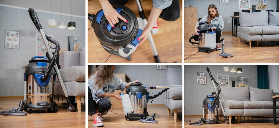 Серцем пилососа є турбіна і фільтри призначені для його захисту, як і у випадку з пилососом Kanwod, де спеціальні фільтри вловлюють забруднення та запобігають їх проникненню, подовжуючи таким чином термін служби. Пилосос надзвичайно ефективний, тому ми можемо бути впевнені, що він не розрядиться під час інтенсивної роботи. Багатий набір всмоктуючих насадок робить пилосос універсальним у його застосуванні, від всмоктування сухого бруду до прання оббивки та килимів! Ми можемо використовувати його для прання: