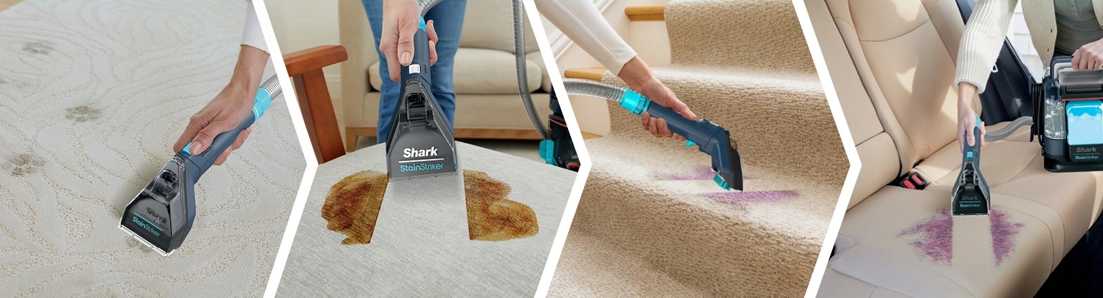 Зустрічайте Shark StainStriker — неперевершений у видаленні плям і неприємних запахів без необхідності попередньої обробки плям.