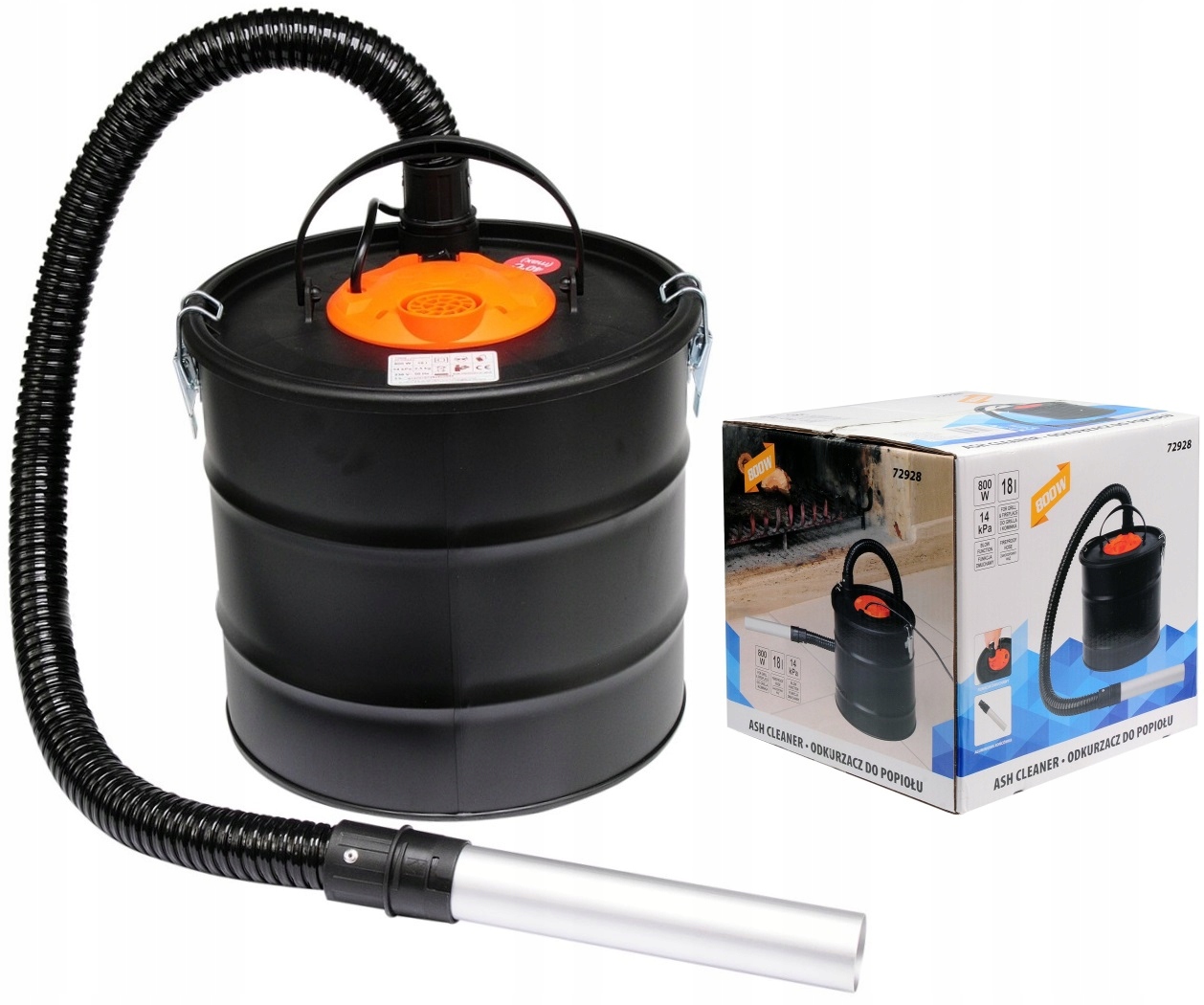 Пилосос для попелу від каміна або гриля, двигун 800 Вт (макс. 1000 Вт), вакуум: 14 кПа,