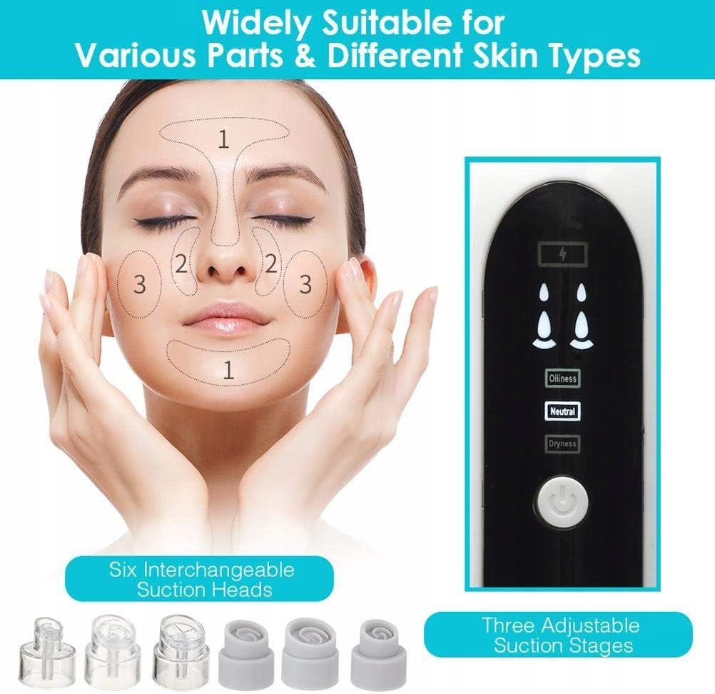 - ❄ 3. Багатофункціональне використання: 3 присоски можна вільно регулювати, щоб адаптуватися до різних типів шкіри, наприклад суха шкіра, жирна шкіра та нормальна шкіра та оснащені 6 змінними наконечниками для відсмоктування, які можна використовувати на різних ділянках шкіри, повністю відповідають вашим потребам та індивідуальним вимогам. Високоякісний ABS-матеріал забезпечує зручне та надійне захоплення, яке є довговічним.