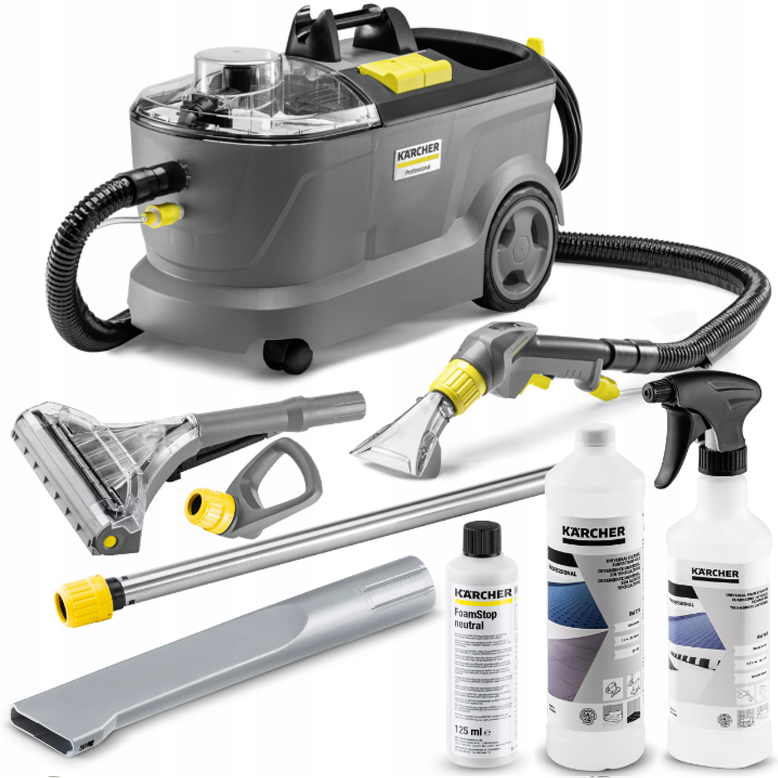 МИЙНИЙ ПИЛОСОК KARCHER PUZZI 10/1 PRO + КОМПЛЕКТ ДЛЯ ПРАЦІ ОББИВКИ