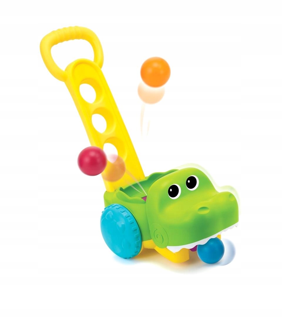 Ваш малюк буде в захваті від того, як крокодил ковтає різнокольорові кульки, як пилосос! Штовхніть іграшку, і ви побачите, як Крокодил ловить в рот різнокольорові кульки і йде далі, а потім кульки весело вистрибують з верхівки іграшки. Видає цікаві звукові ефекти, коли малюк штовхає пилосос по підлозі.