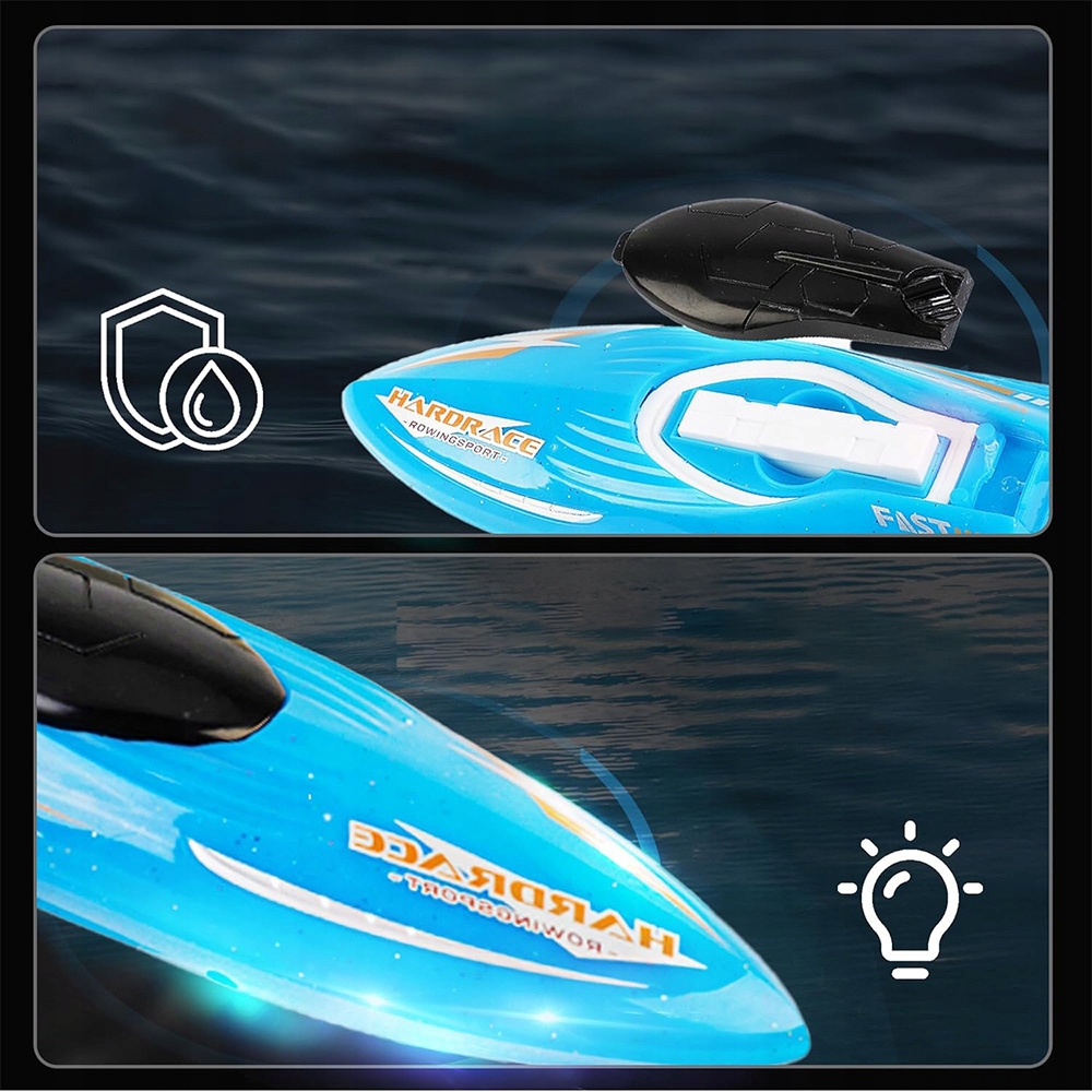 - двигун запуститься лише тоді, коли електрична іграшка RC торкнеться води. Коли акумулятор слабкий, швидкість автоматично зменшиться, а світлодіодний світлодіод автоматично спалахне, щоб нагадати вам.
