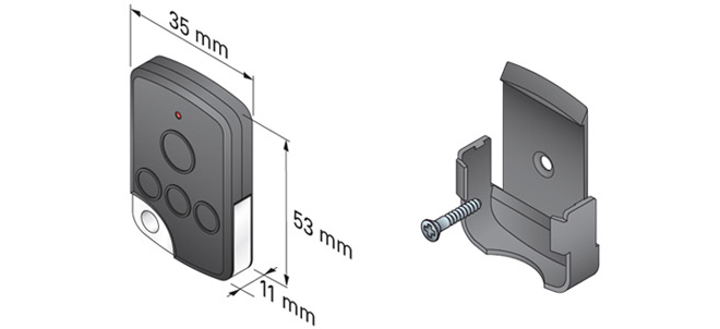 - пульт дистанційного керування з червоним діодом з кодуванням RTS (змінний код, частота 433,42 МГц)