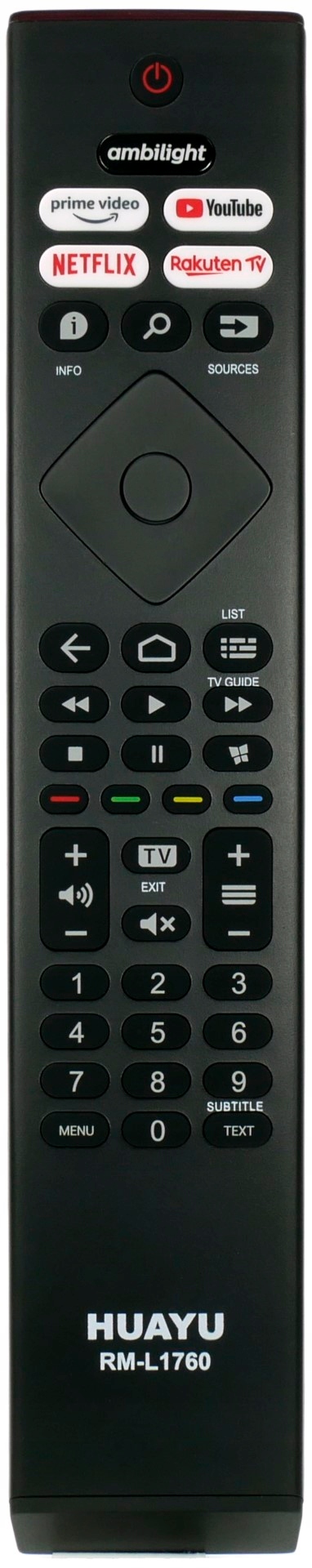 Пілот, який ми пропонуємо,-це замінний пульт дистанційного керування . Він характеризується високою якістю. Завдяки своєму будівництву, матеріалу та функціональності він відповідає всім стандартам, специфічними для заміни продуктів. Має мультимедійні клавіші youtube , netflix , prime video , rakuten tv та можливість приєднати підсвічування Philips LED AmmiLight . Акумулятори та пілот готові працювати.