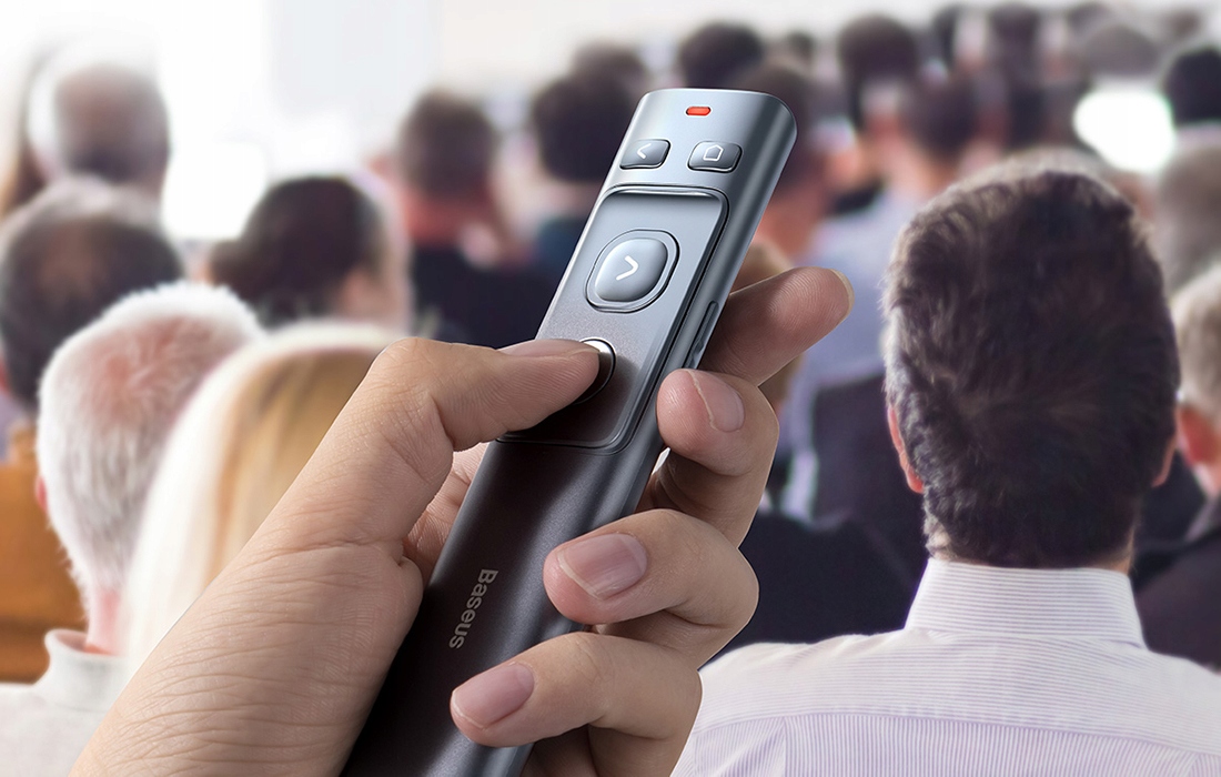 Ви хочете привернути увагу аудиторії до чогось важливого? Або, можливо, ви хочете показати своїй аудиторії певний момент на слайді? Без проблем! Пульт дистанційного керування Baseus оснащений лазерною указкою з радіусом дії до 100 м. Тепер ви можете легко показати іншим учасникам конференції найважливіші елементи вашої презентації та пояснити всі питання.