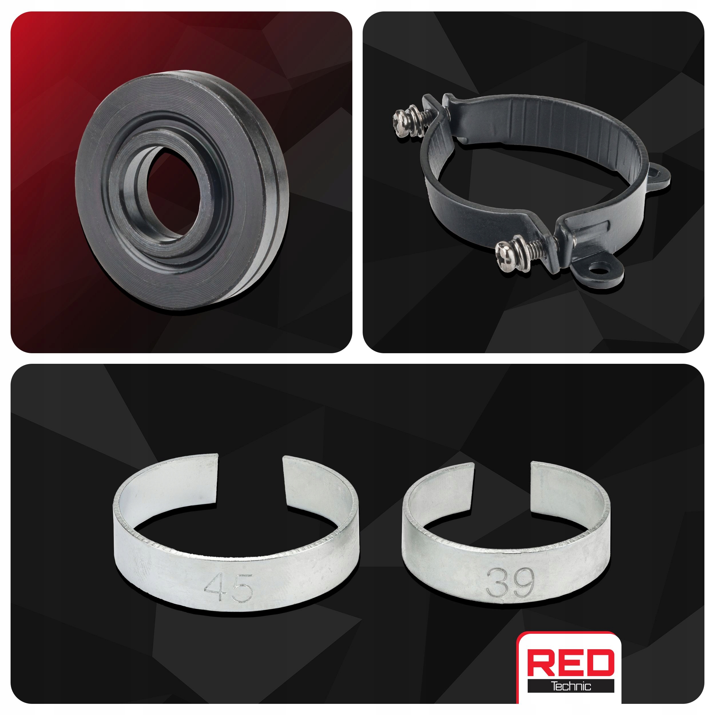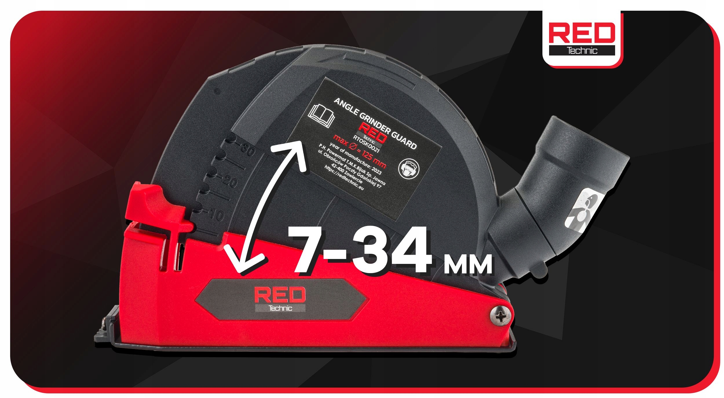 Універсальний пилозахисний чохол RED Technic для шліфувальних машин 115–125 мм забезпечує ефективне відведення пилу, регульовану глибину різання (7–34 мм) і сумісність з будь-яким пилососом. Легкий ергономічний дизайн гарантує зручну роботу, а адаптери та накладки, що входять у комплект, дозволяють легко адаптуватись до різних пристроїв.