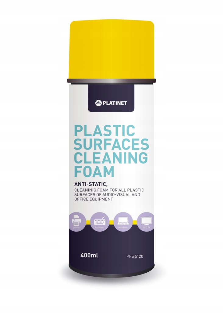 Антистатична, бактерицидна піна для очищення пластикових поверхонь в офісній та аудіовізуальній техніці (монітори, копіювальні апарати, сканери, побутова техніка та електроніка та ін.) Чудово видаляє жирні плями та бруд, очищає пластикові поверхні від пилу, нікотину, жиру та інших типових забруднень, не залишає смуг.