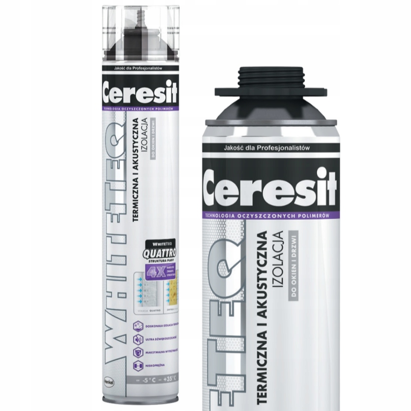тригер. При плюсових температурах нанесення піни необхідно передувати зволоженням основи. Потрібно заповнити лише 1/2 отвору. Нарешті збризніть свіжу піну водою. Піна WHITETEQ QUATTRO не викликає деформації віконних і дверних рам під час їх монтажу. Рекомендується захистити затверділий пінопласт від сонячного світла, покривши його, наприклад, цементним розчином, штукатуркою, фарбою тощо.