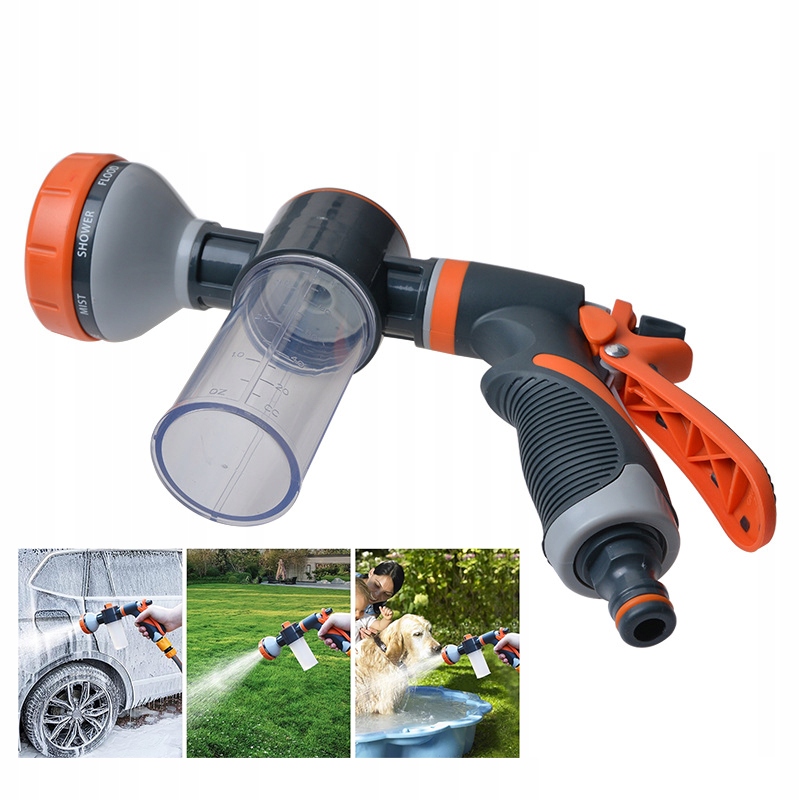 [Структура дозатора мила]: насадка садового шланга оснащена пляшкою з дозатором мила Зручний і практичний. Використовуючи ручку регулювання води, обертайте їх відповідно до руху за годинниковою стрілкою, щоб поступово збільшити об'єм води. Голова розпилення, щоб зробити голову розпилення, щоб адаптувати її до потреб та задовольнити потреби різних сцен. Гумове покриття TPR та хвостовий роз'єм хвоста, хороша ущільнювач, твердий і міцний. Ви можете легко підключити його до садового шланга. тощо
