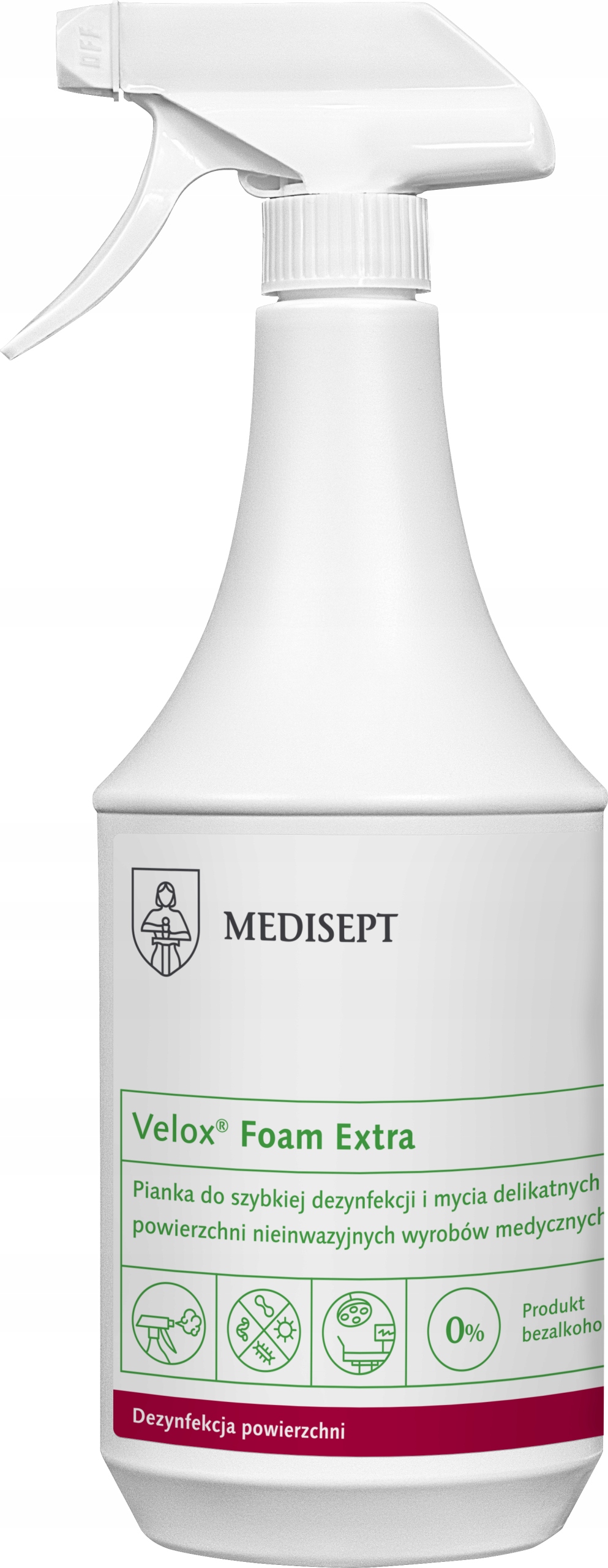 Застосування: Velox® Foam Extra – піна, рекомендована для дезінфекції різноманітних поверхонь неінвазивних скляні медичні прилади,