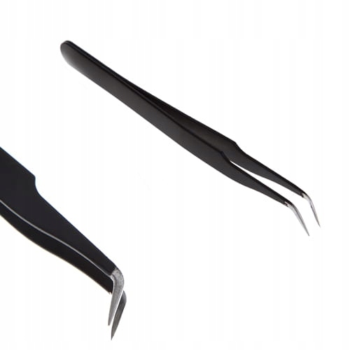 Пінцет металевий зігнутий для вій ESD15, ЧОРНИЙ, PRECISION
