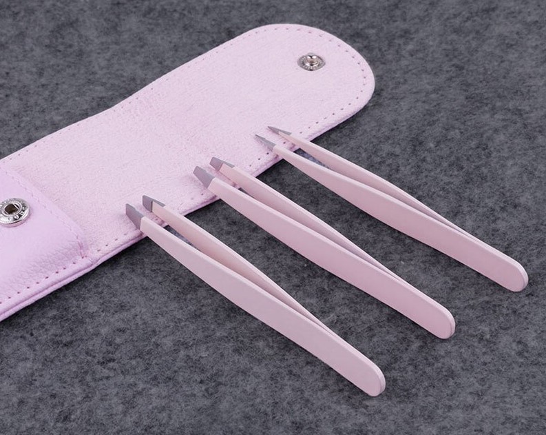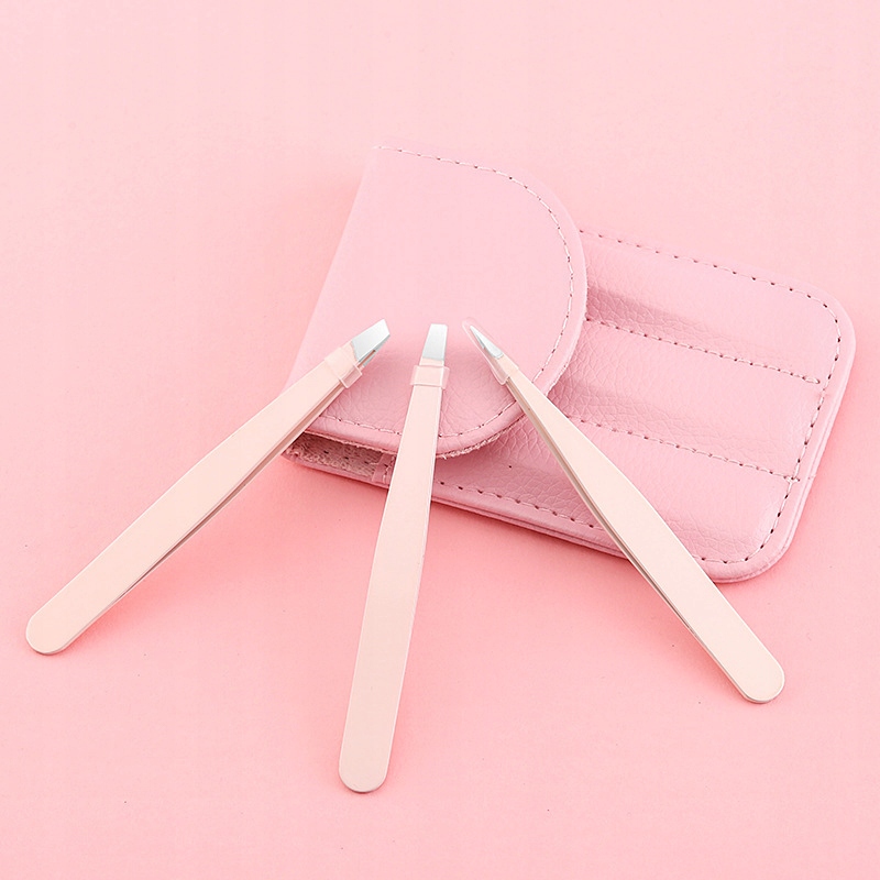 Пінцет набір пінцет у футлярі по 3 шт рожевий
